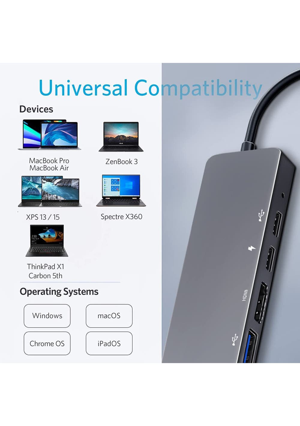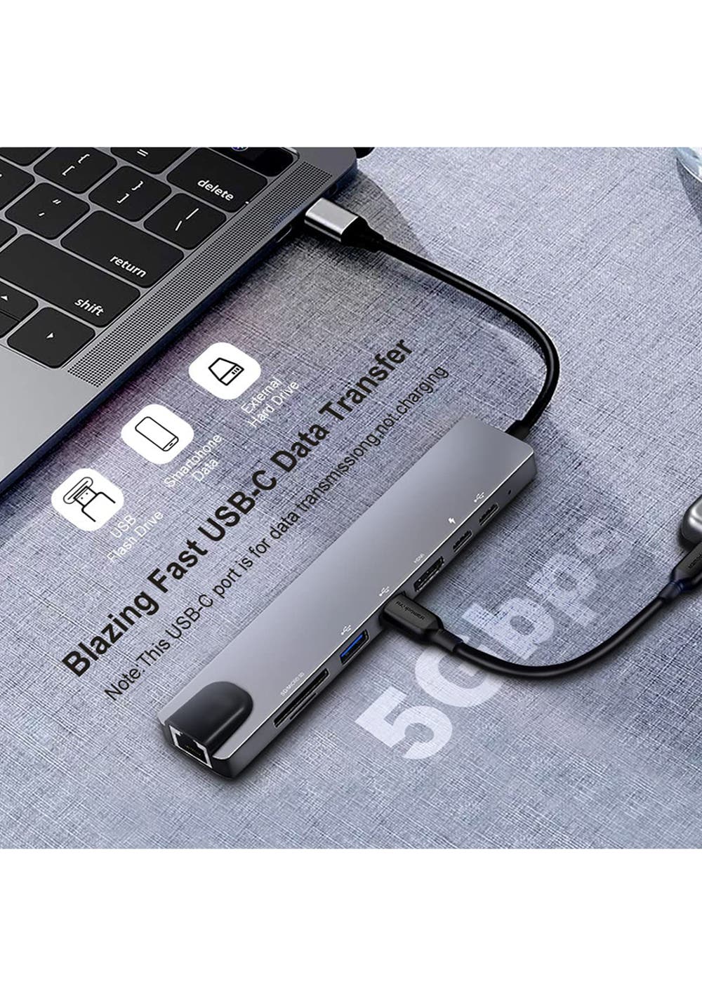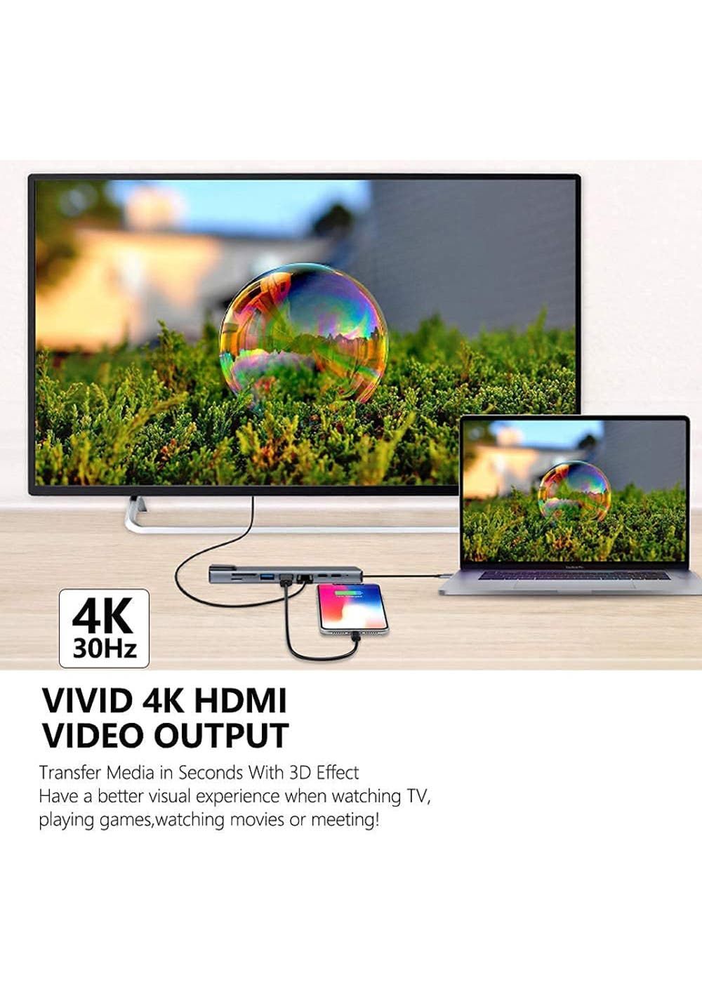 Maximum support for 85W PD fast charge: the 85W PD pass-through charging port keeps your MacBook Pro Air or other compatible USB C laptops Fast charged.