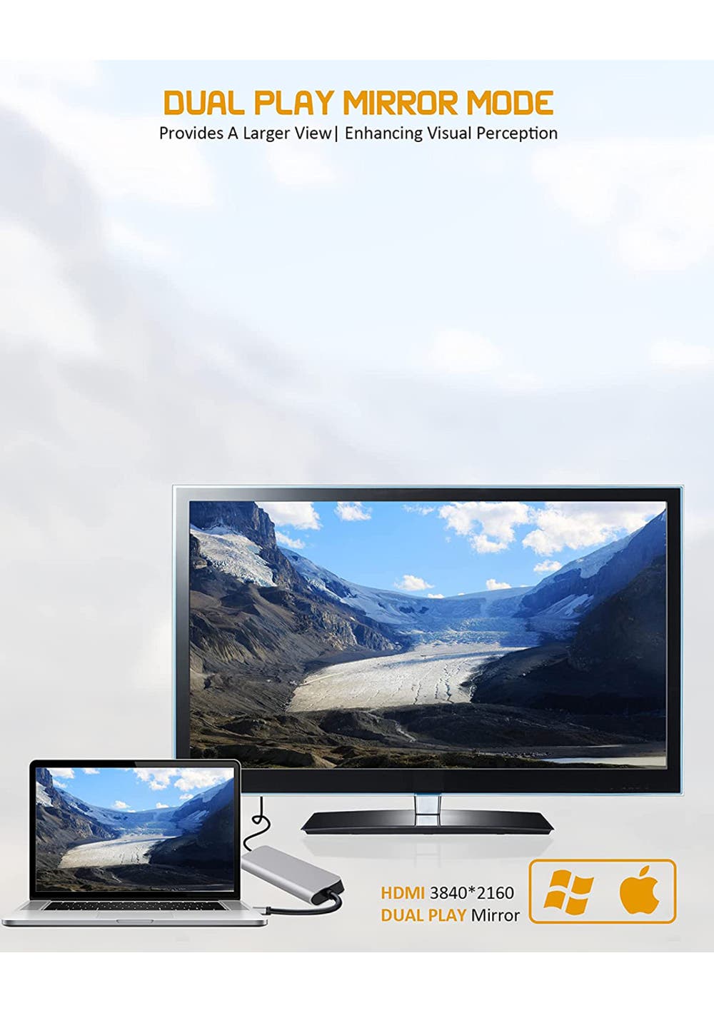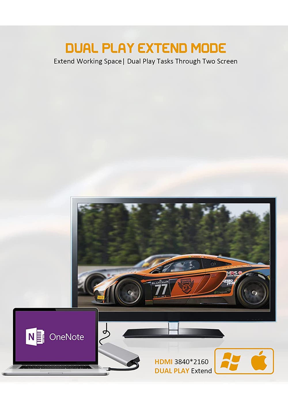 USB HUB with HDMI 4K output (without HDCP) – Highly supports 4K resolution, adapt to 4K monitor when connecting, providing dual play mirror mode & extend mode to display device