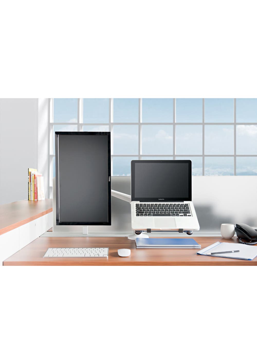Healthy office--Adjust the monitor and laptop to the most comfortable position, helping reduce strain on your neck and shoulder, organize your workspace and improve your work efficiency.