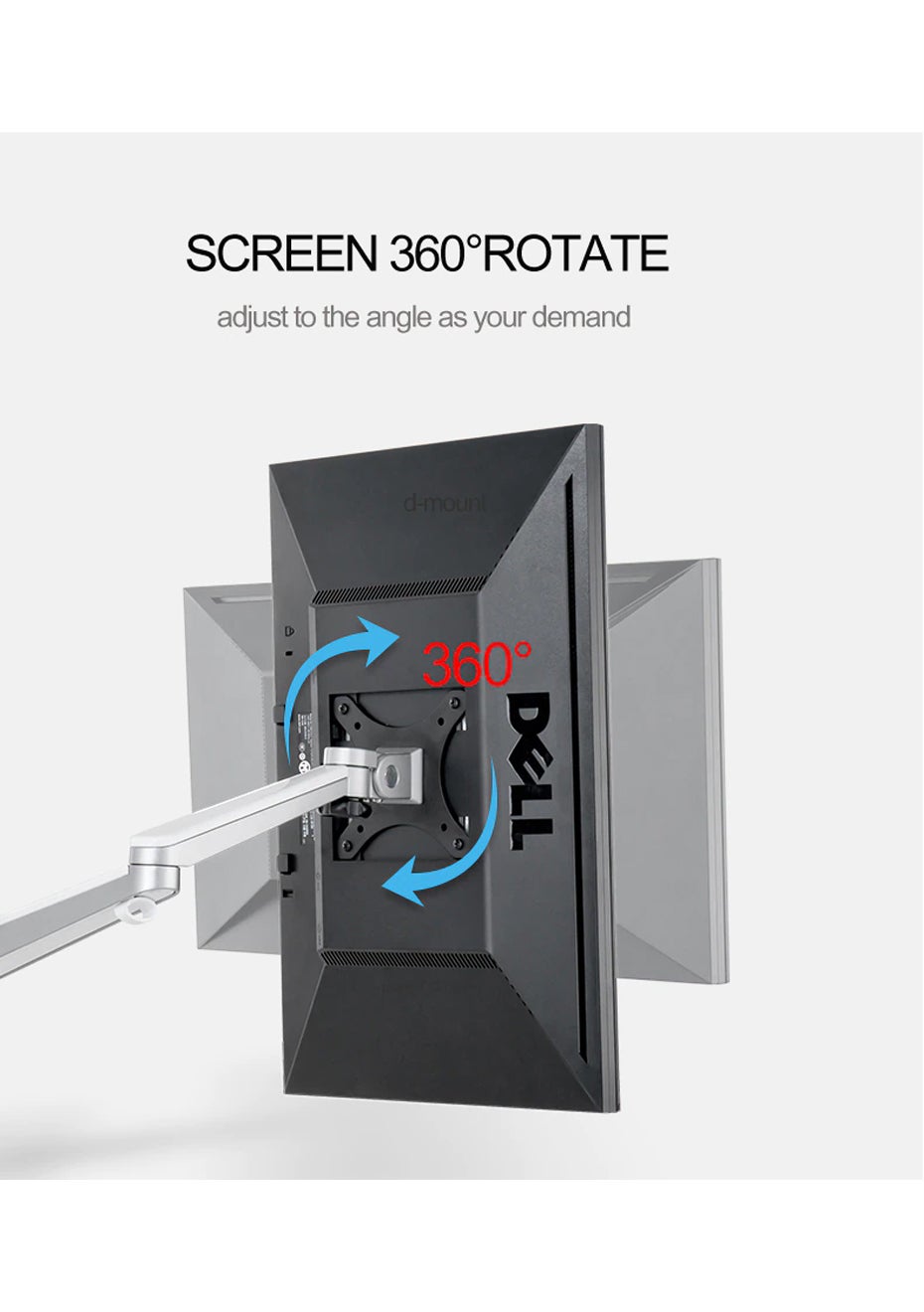 Steady Arm-- Made of heavy duty and premium aluminum to guarantee the sturdy and stable, the maximum display weight is below 7kg