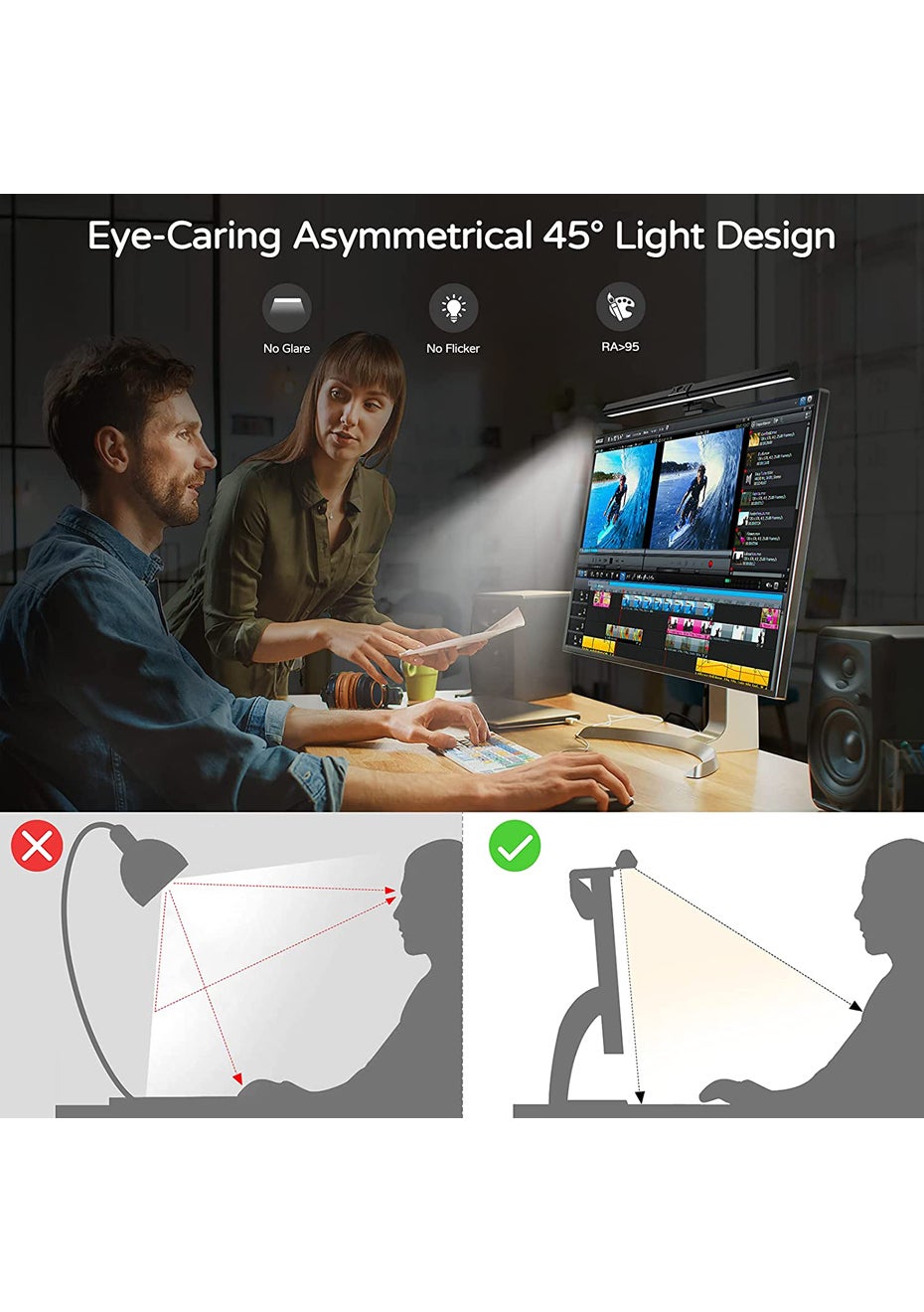 No screen glare - It has an asymmetrical Optical design that only illuminates the desk and doesn’t shine on the screen, avoiding reflective glare.