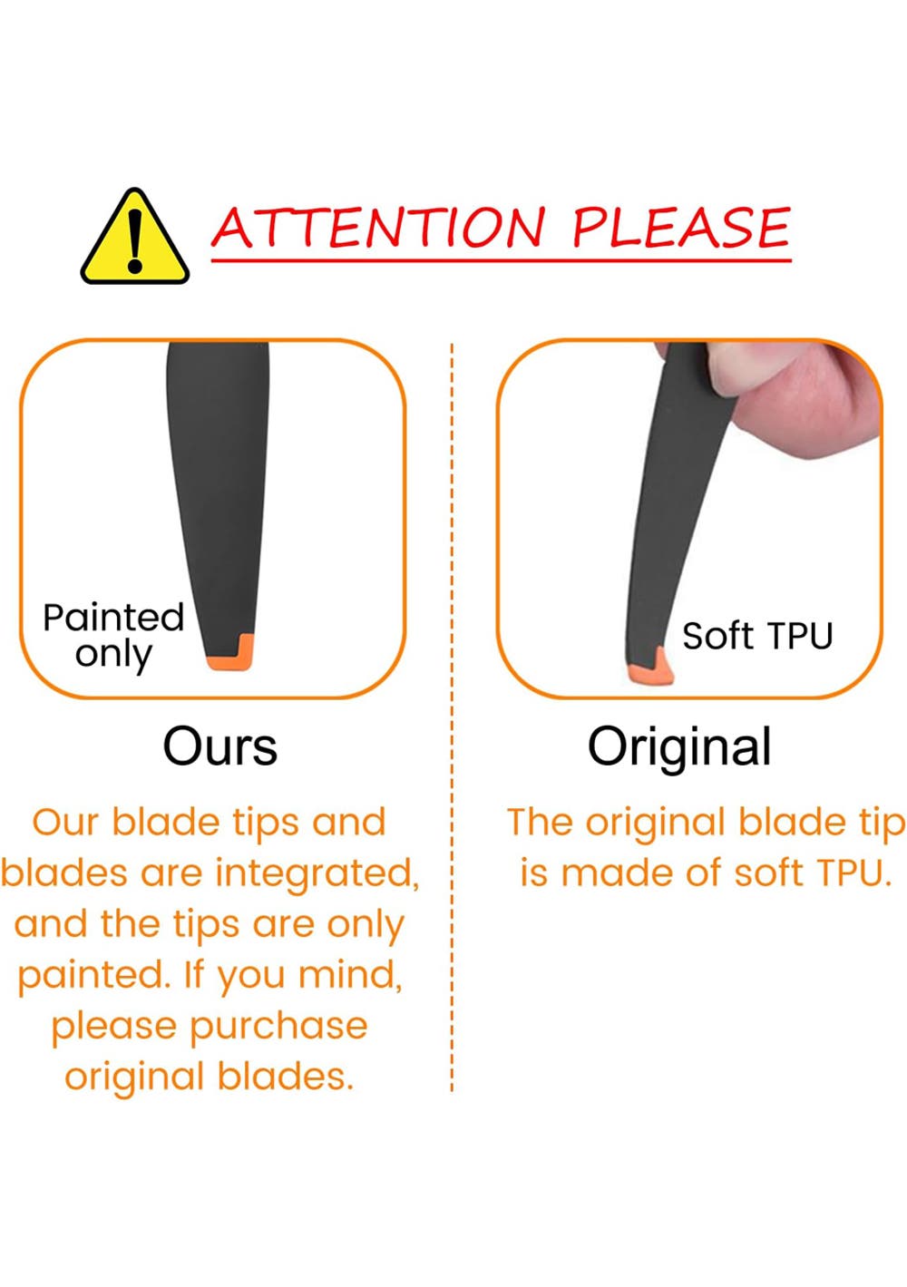 Durable Construction: Crafted from robust ABS material, with a distinct orange tip for easy identification, these propellers combine durability with a sleek design, providing long-lasting utility.