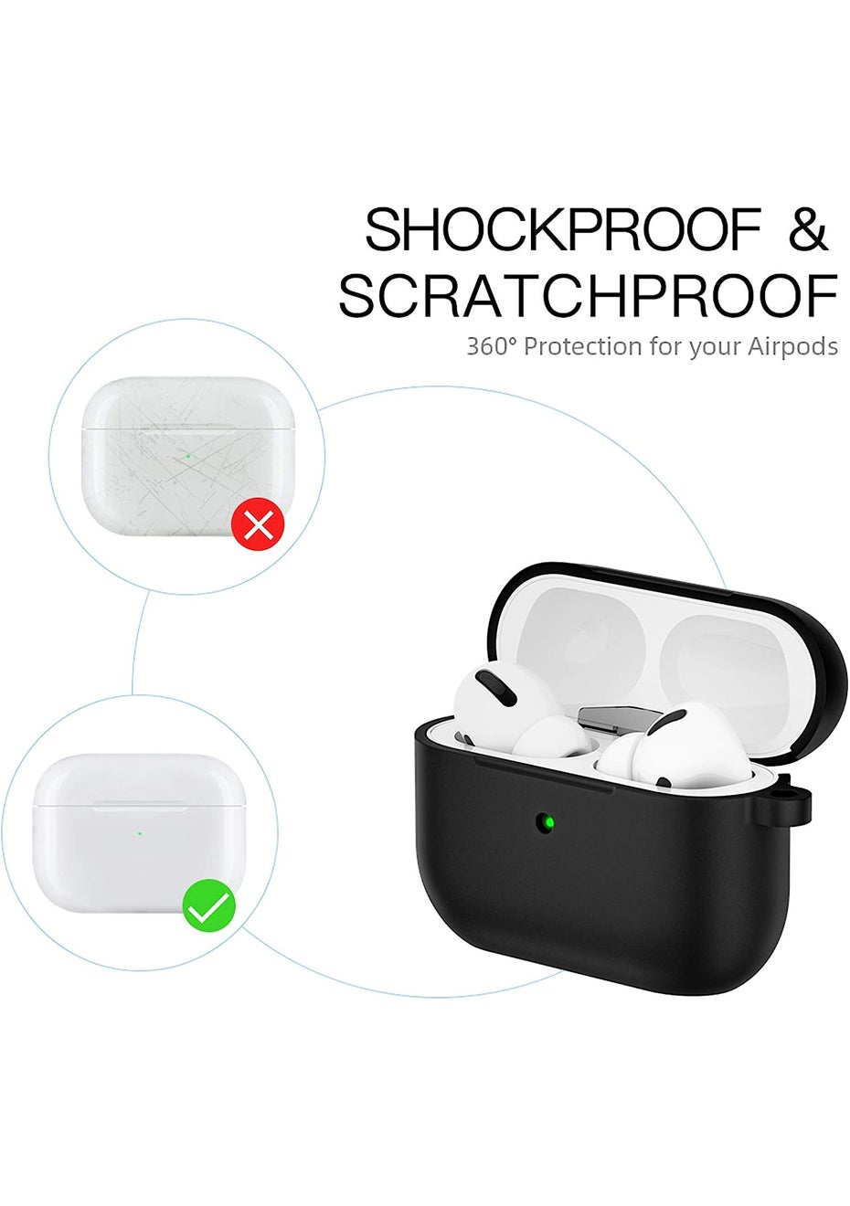 AirPods Pro Case Cover with Carabiner-Gray<br><br>Material: Silicone Gel, Metal<br>Product dimensions (LWH): 62.3 x 47.7 x 24 mm<br>Package dimensions (LWH): 4x10x5cm<br>Weight: 30g<br><br>Features:<br>• Superior Protection: Exclusively designed for the Apple AirPods Pro, this case is made from premium soft silicone, safeguarding your AirPods Pro against daily wear and tear, drops, and scratches. The built-in dust plug ensures the charging port remains clean and protected when not in use. Note: This case isn't compatible with AirPods 1st, 2nd, or 3rd generation.<br>• Charging Made Easy: This AirPods Pro case cover is tailored to fit perfectly, ensuring that wireless charging remains unhindered. Moreover, there's no need to remove the case when charging your AirPods from the bottom.<br>• Visible Front LED: The interior wall of the cover has been meticulously designed to let the front LED indicator of your AirPods Pro case shine through. Furthermore, the enhanced hinge design ensures that the case can be fully opened without any cracks or breakage.<br>• Handy Carabiner Included: This AirPods Pro case comes with a metal carabiner clip, making it incredibly easy to carry. Attach the AirPods case to your handbag, backpack, or belt loop, ensuring you'll never misplace or lose your AirPods again.<br><br>Package Includes:<br>1 x AirPods Pro Case with a Carabiner