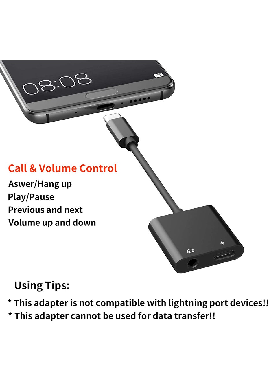 2 in 1 USB C to 3.5mm Headphone Jack Charging Adapter