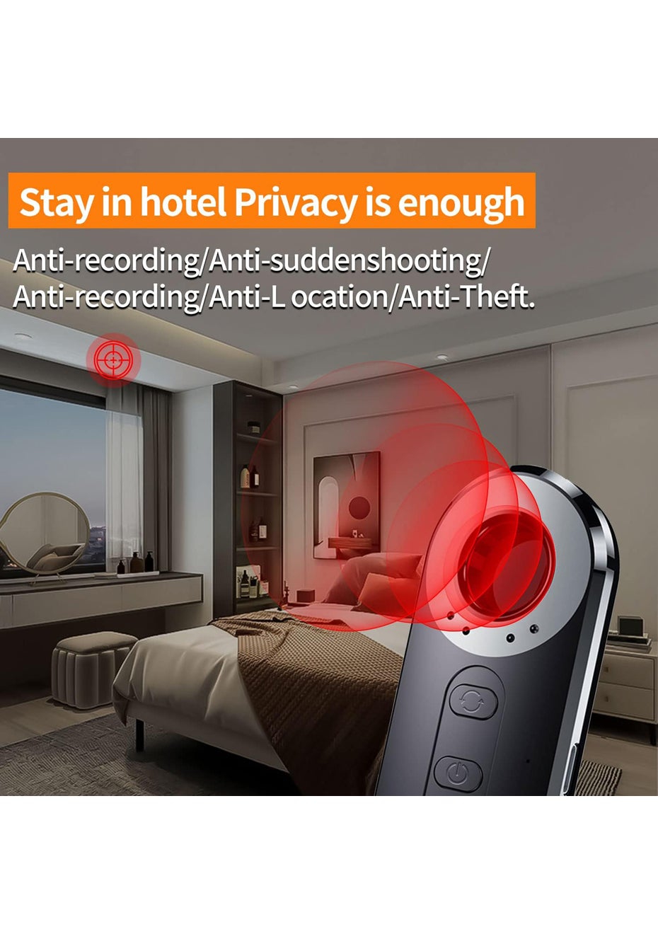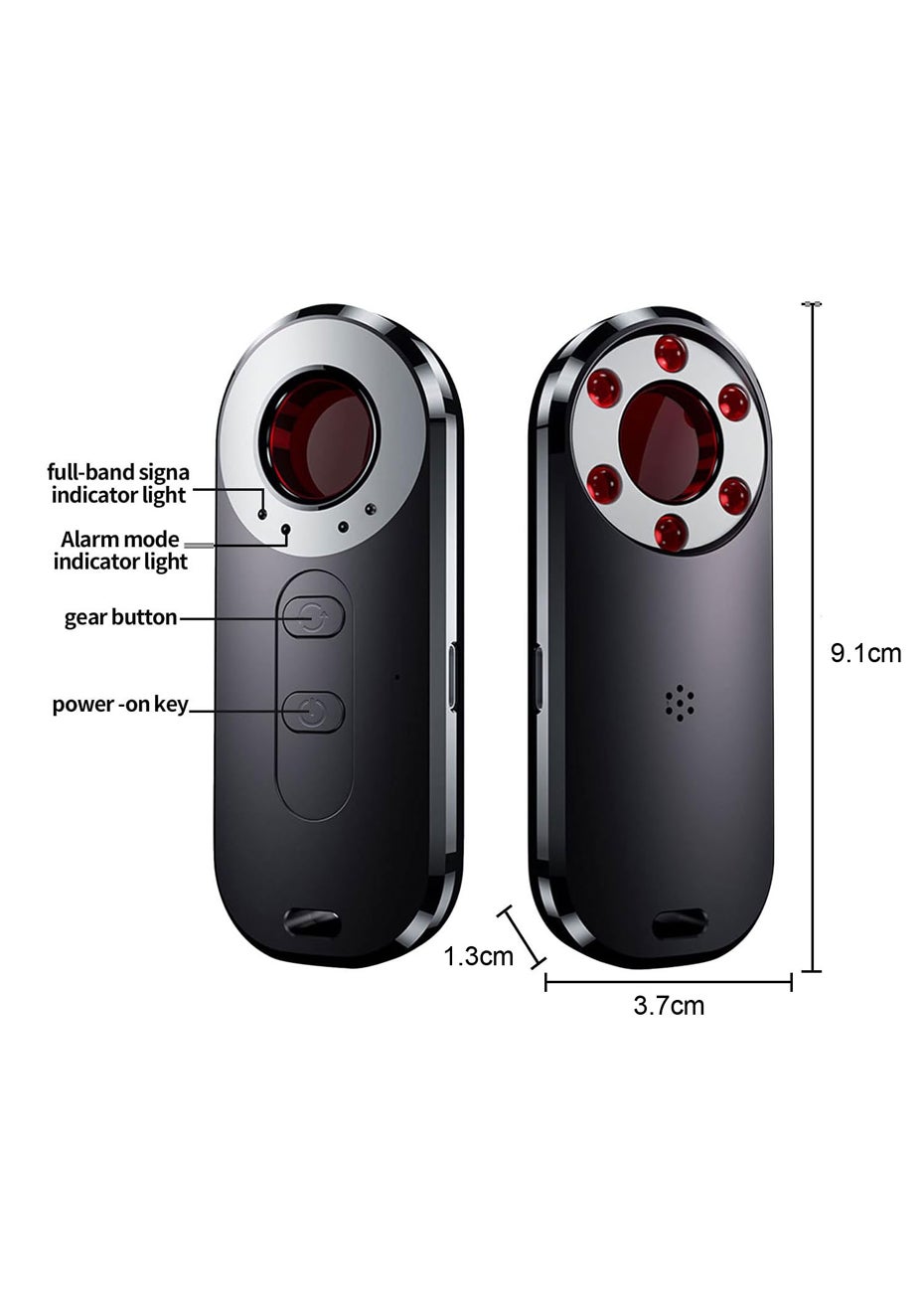 Anti-Monitoring Scan Tracker Detector Hidden Camera Detectors<br>Material: ABS<br>Product dimensions (LWH): 3.7×1.3×9.1cm<br>Package dimensions (LWH): 11.5x6.5x3.5cm<br>Weight: 60g<br>Feature<br>About this item<br>• 【Designed for Various Individuals】: This device is ideal for individuals who often visit public places, try on clothes in shopping malls, value personal privacy, keep business secrets, and aim to protect against unauthorized recording or eavesdropping.<br>• 【Wide Application】: Detect the presence of wireless bugs in your car or office. Assess if your mobile phone is bugged or exhibiting abnormal behavior such as unexplained signal presence when on standby. Check if your car has a GPS location tracker. Detect mobile phone message sending and receiving, internet signal, phone switch, and call signals.<br>• 【Functionality】: 1. Portable and automatic detection of bugs and pinhole cameras in the environment. 2. Equipped with multiple indicators that can quickly locate the signal source based on signal strength. 3. An adjustable sensitivity function (improves the sensitivity, enlarges the detection range, or reduces the sensitivity and shortens the detection range).<br>• 【Privacy Protection】: Equipped with a newly upgraded sensitive chip that offers anti-locator capabilities. The chip, with a 1Mhz -6.5GHz broadband, can detect all locators and accurately track and find the transmitter location of a wireless eavesdropper. Its ultra-high sensitivity can be adjusted, allowing for detection of hidden camera equipment from different distances and to scan a larger area or decrease to pinpoint a precise position.<br>Package Include<br> 1 x Anti-Monitoring Scan Tracker Detector Hidden Camera Detectors<br> 1 x USB cable<br> 1 x User Manual<br> 1 x Lanyard<br>