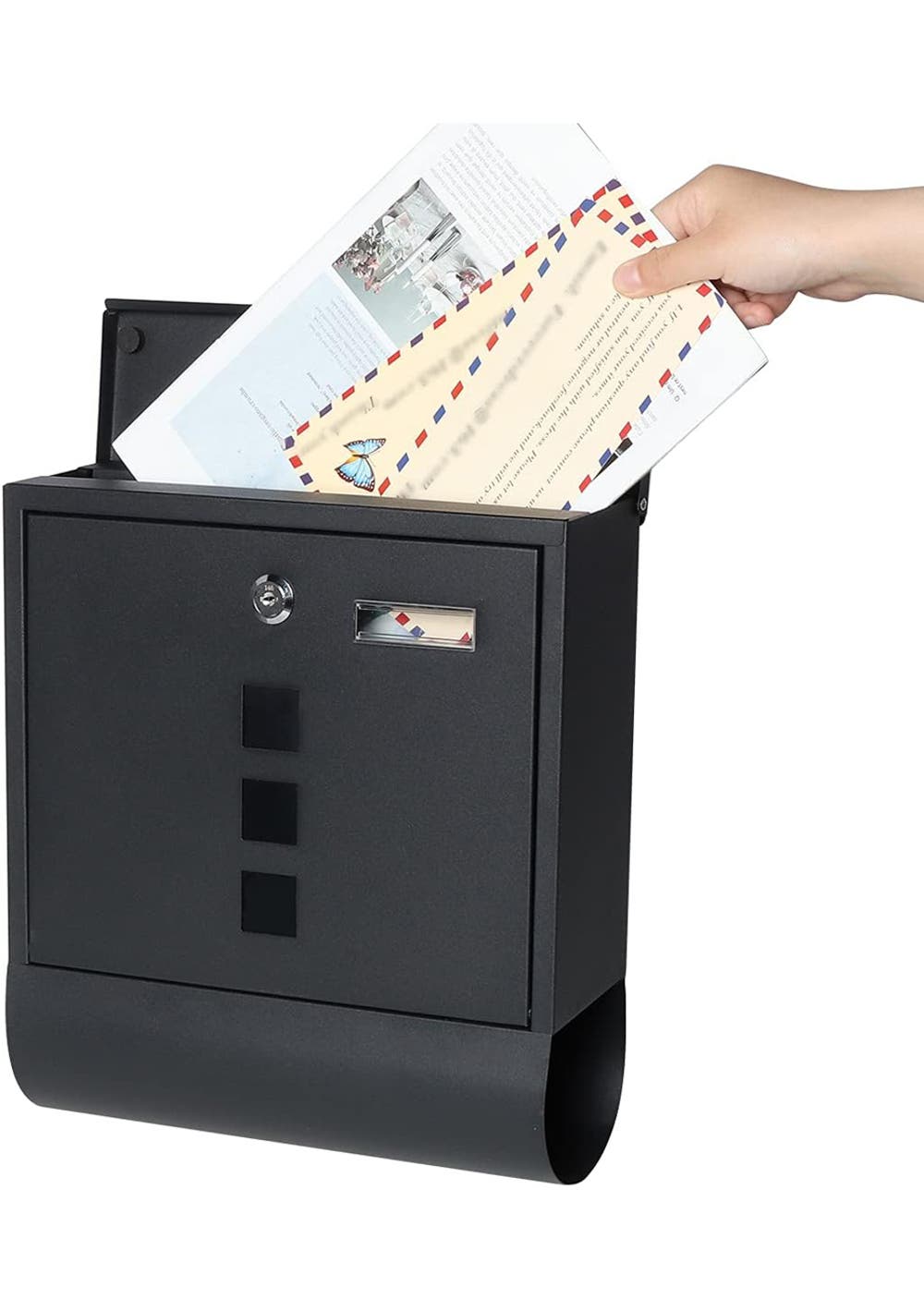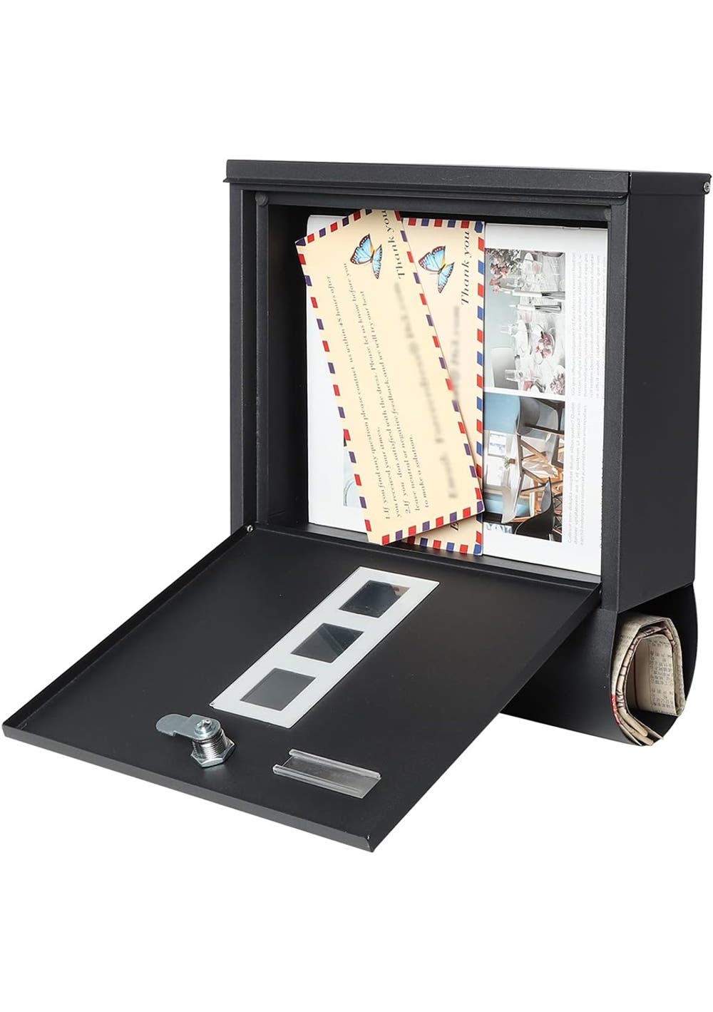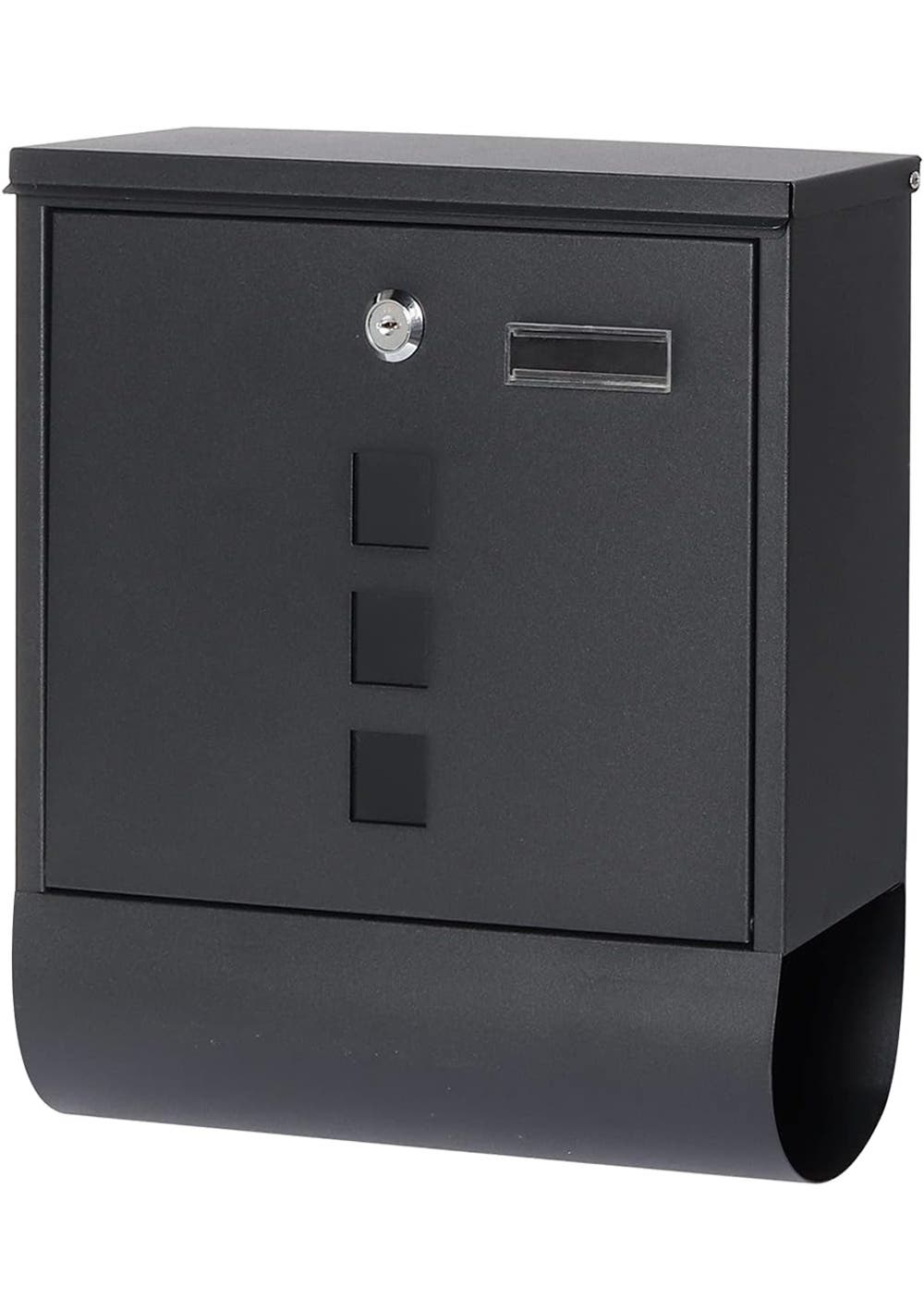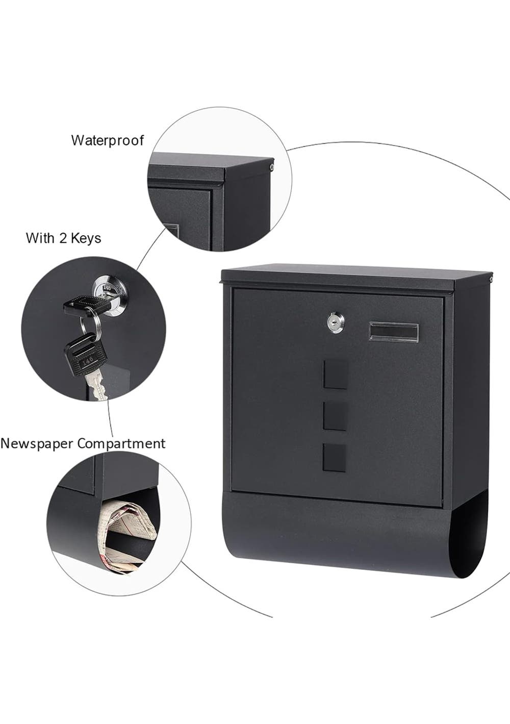 Material: Zinc-plated steel<br>Product dimensions (LWH): 30.5×9.5×33.5cm<br>Package dimensions (LWH): 40x33x13cm<br>Weight: 2240g<br><br>Feature<br>AESTHETIC APPEAL: Want a stylish letterbox to match your modern door? Give this mailbox a go! Designed with sleek lines and finished with a trendy anthracite dark grey colour, this mailbox will adorn your home exterior while offering its original purpose<br>THE LOCK? COVERED! Once the lock cylinder is splashed with rainwater, it’s prone to get rusty. That’s why the lock on this mailbox is shielded by a steel flap lid to protect it from the elements<br>HIGH-QUALITY PERFORMANCE: Zinc-plated steel unites with durable powder coating—making this mailbox more resistant to rust and water; with a newspaper holder included, your newspapers, catalogs, and subscription magazines can all be nicely stored here<br>ASSEMBLY? IT’S A DODDLE! This letterbox comes with included screws, expansion bolts, and spacers. All it takes is a simple drill and screw installation to hang this box up near your front door or porch, ready to welcome incoming mail<br>WHAT YOU GET: A wall-mounted robust mailbox with a flap lid, a lock, two keys, viewing windows, mounting hardware, and a snazzy look for adding a touch of charm and novelty to your exterior door<br>Package Include<br> 1 x Galvanized Steel Wall Mount Mailbox<br> 4 x screws<br> 4 x expansion bolt <br> 4 x spacer<br> 1 x instruction book<br> 2 x keys