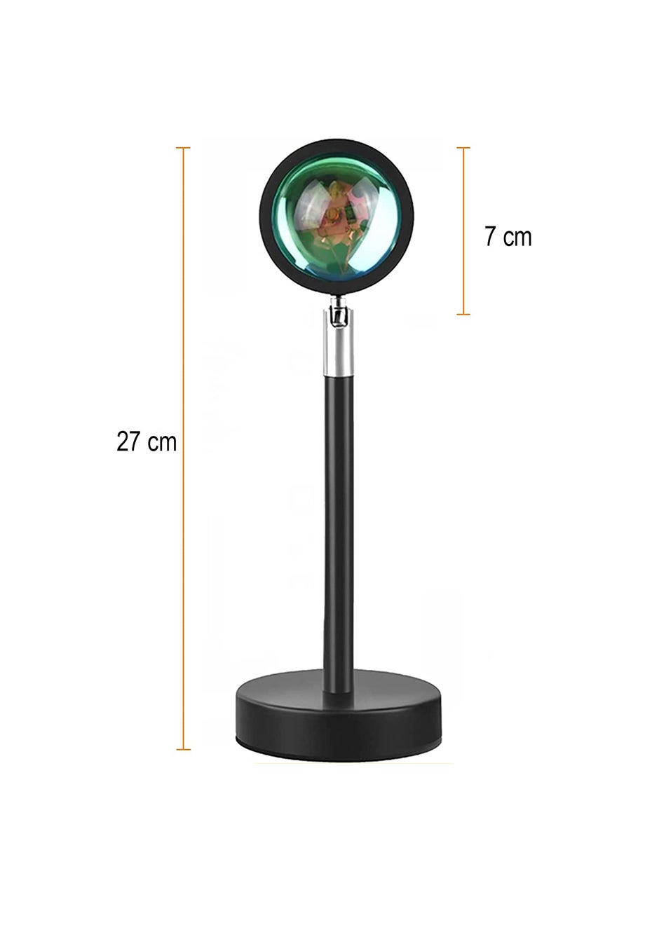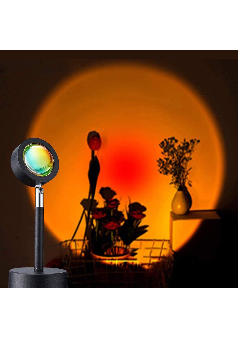Features  Sunset LED lamp allows you to have a romantic modern bedroom, a warm and pleasant living room for you and your family, and a quality of life.  Bring happiness to family and children.  The Sunset Lamp Projector head can be rotated 180 degrees, can produce different lights from different angles, so as to bring different effects to your room. (The rotating position adopts a mixed metal of iron and aluminum, so there is no need to worry about frequent turning to cause product damage.)  Made of high quality PC+iron. The Sunset lamp is always stable thanks to the stable base and lamp mast.  The energy-efficient, glare-free LED lamp has a long service life.  Rotating the light can adjust the size and shape of the halo of projector night light. The greater the distance, the greater the projection that the sunset light can throw on the wall or ceiling.  USB power supply, cable with switch, 1.5 meters long USB cable.  Package Include  1 x USB LED Sunset Projection Photography Light