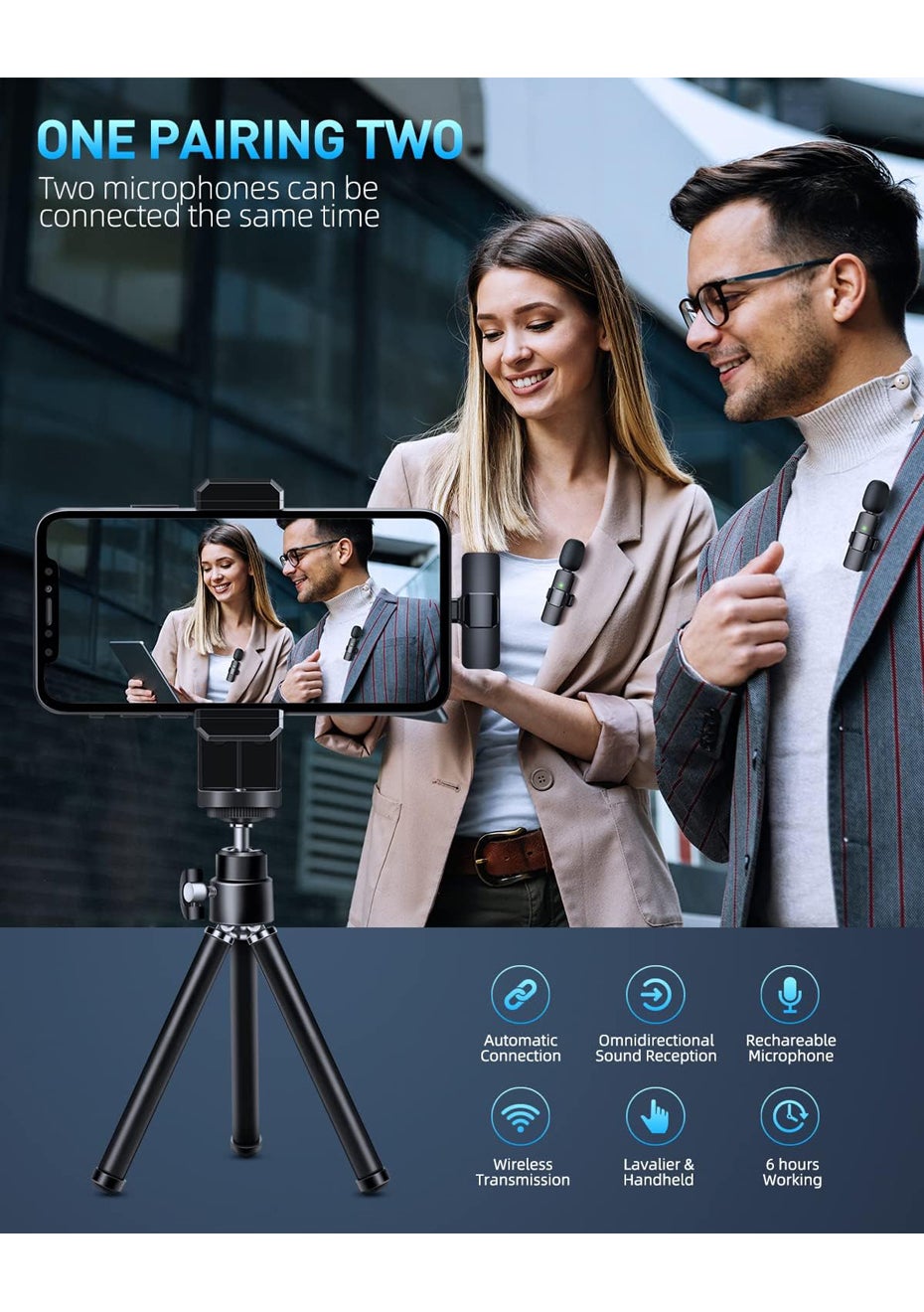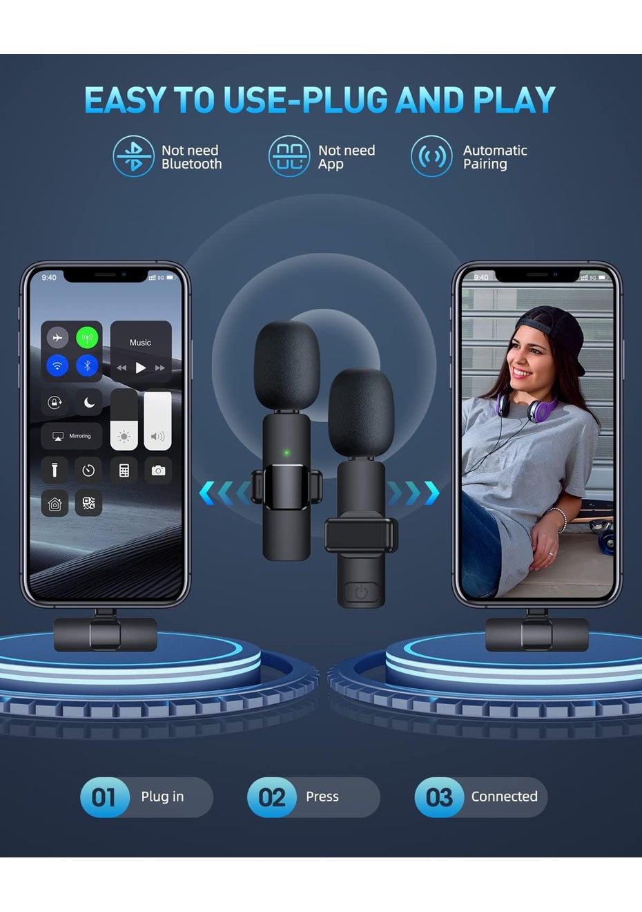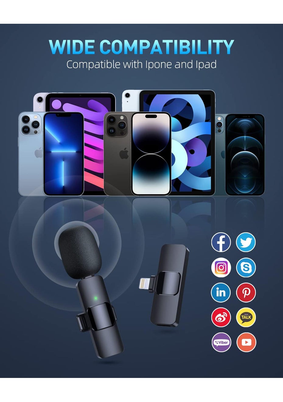 2Pack Wireless Lavalier Lapel Microphone for iPhone, iPad