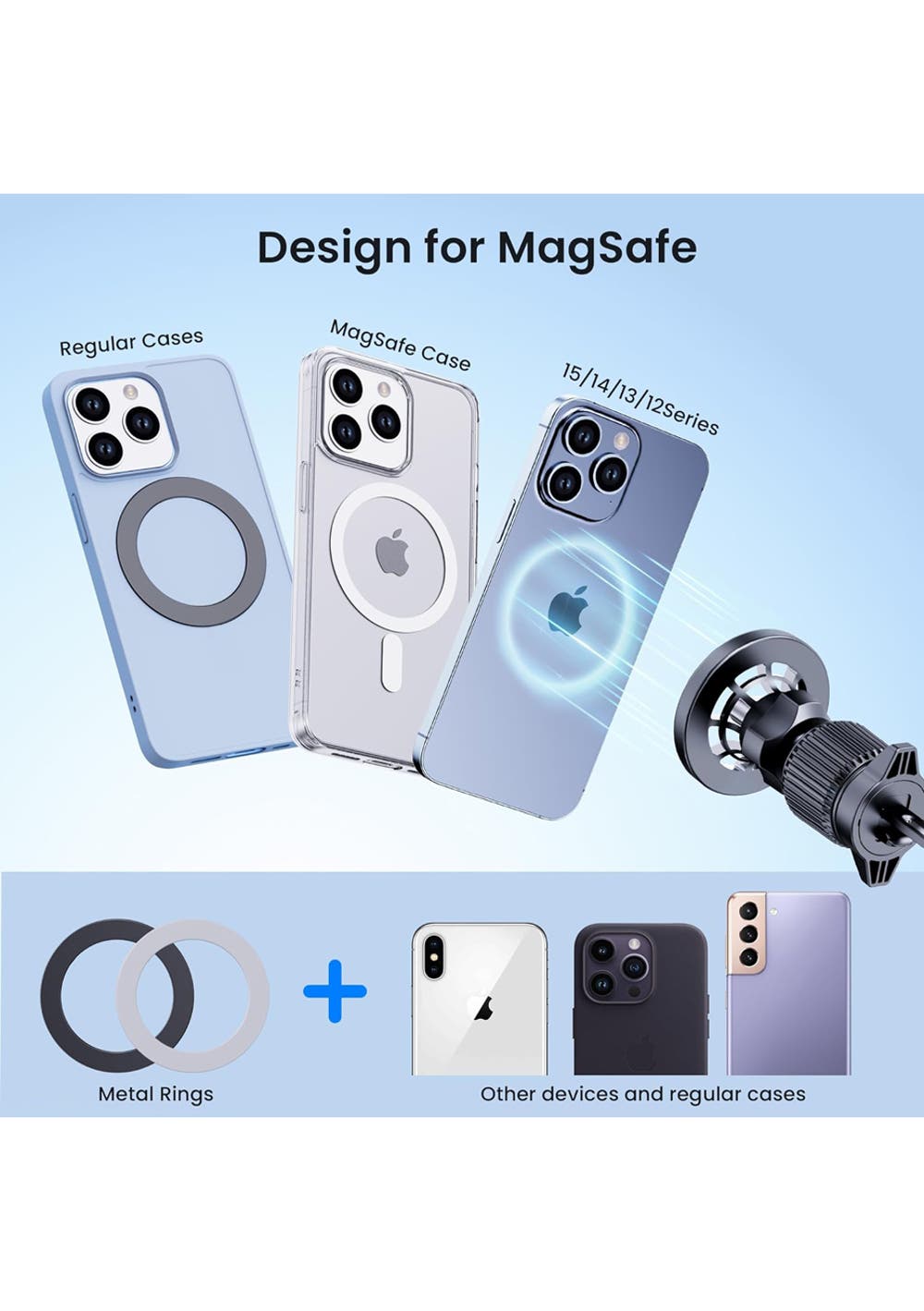 Universal Compatibility - Perfectly tailored for iPhone 15/14/13/12 series and fully supports wireless charging. Includes metal rings for non-MagSafe Android phones and other iPhone models, providing a seamless, snap-on attachment for hassle-free, hands-free use.