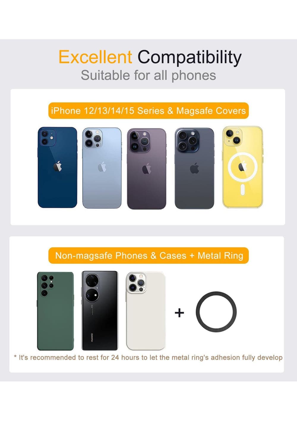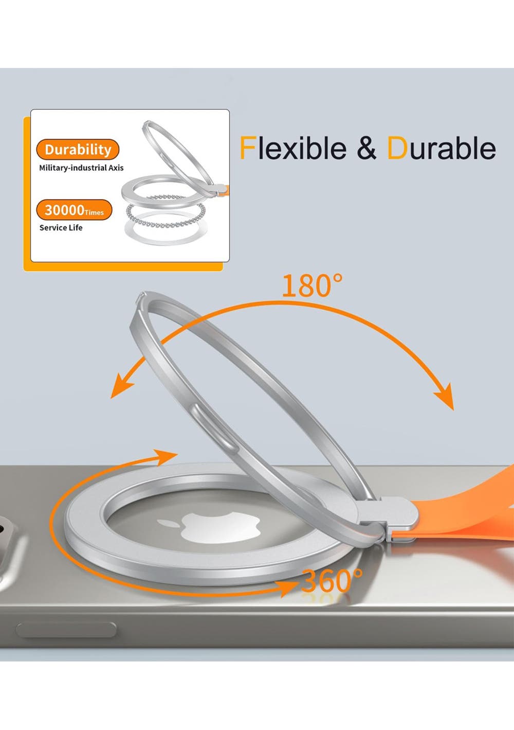 Magnetic Ring Holder With Finger Loop Compatible MagSafe iPhone-Silver Material: Aluminum Alloy + Silicone Dimensions: Package dimensions (LWH): 14 x 9 x 1.2 cm Weight:65g Unparalleled Comfort Grip: Experience the ultimate in comfort with the innovative magnetic ring holder. Ditch the traditional metal grip for our ultra-soft silicone material that ensures a comfortable hold without causing finger joint swelling. Perfect for prolonged use, this ring holder offers a secure, comfortable experience. Exceptional Magnetic Force: Equipped with the state-of-the-art N52 permanent magnet, this MagSafe compatible ring holder provides superior magnetic performance and corrosion resistance. Keep your iPhone securely in place, and never worry about accidental drops. Universal Compatibility: Whether you're an iPhone or Android user, this magnetic phone ring caters to all. Compatible with iPhone 12/13/14/15 series. Includes a metal ring for non-magnetic phone cases, ensuring strong adhesion and compatibility across devices. Flexible and Durable Design: Made from high-strength aluminum alloy and silicone, our ring holder can withstand up to 3,000 folds. Adjust the kickstand 360 degrees and the ring 180 degrees for optimal viewing in both portrait and landscape modes. Compact and Portable: This magnetic phone ring holder is not only lightweight at 45 grams but also ultra-thin at 3 inches in thickness. Easily fold it into your pocket or purse, making it the perfect travel accessory for business trips or daily use. Package Includes: 1X Magnetic Ring Holder 1X Metal Ring