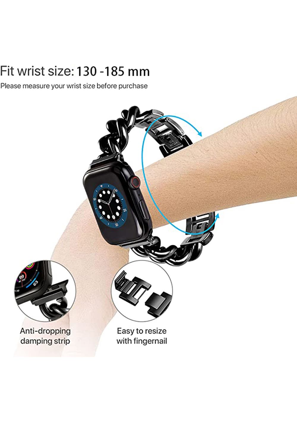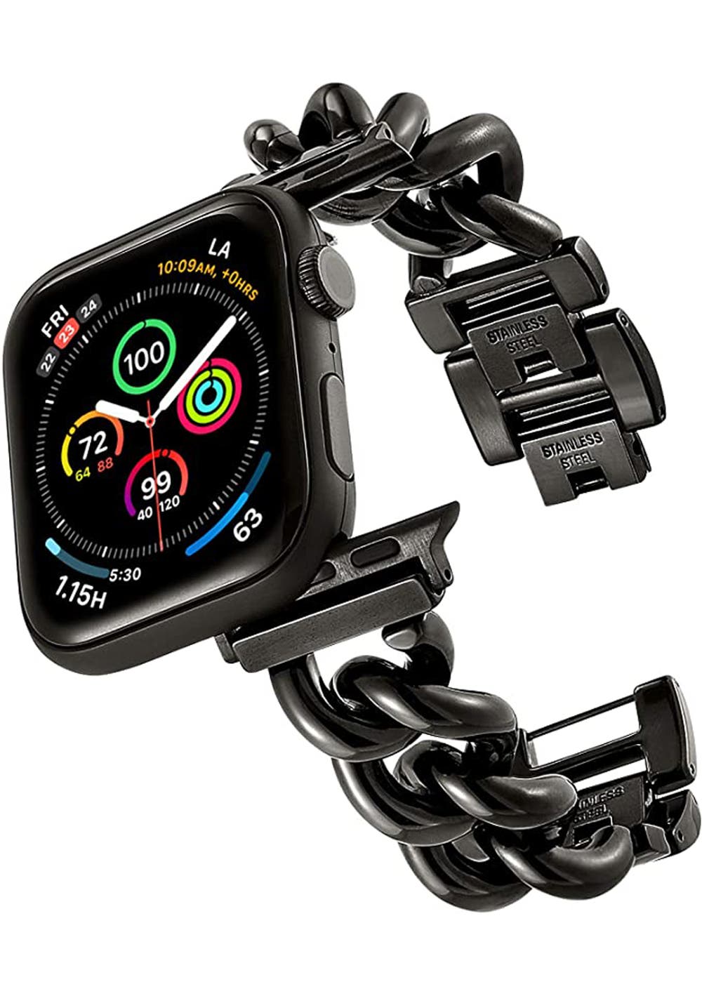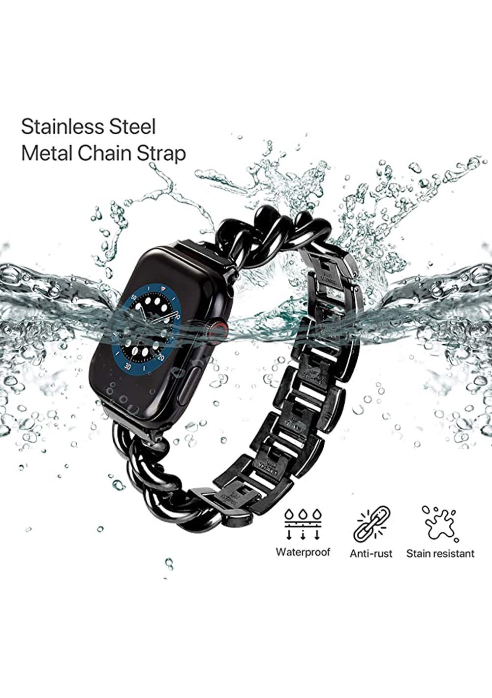 Stainless Steel Chain Bracelet Compatible With Apple Watch Band for 42MM 44MM 45MM-Black