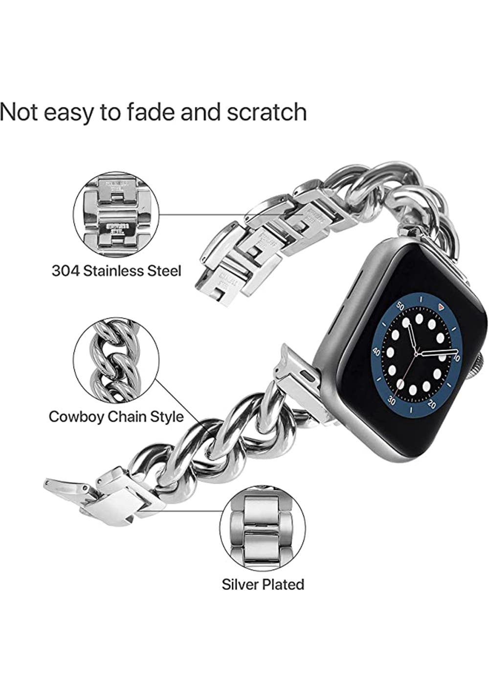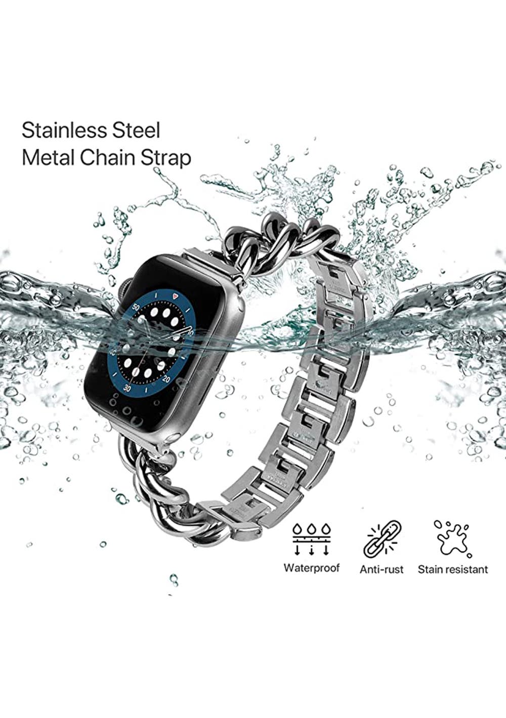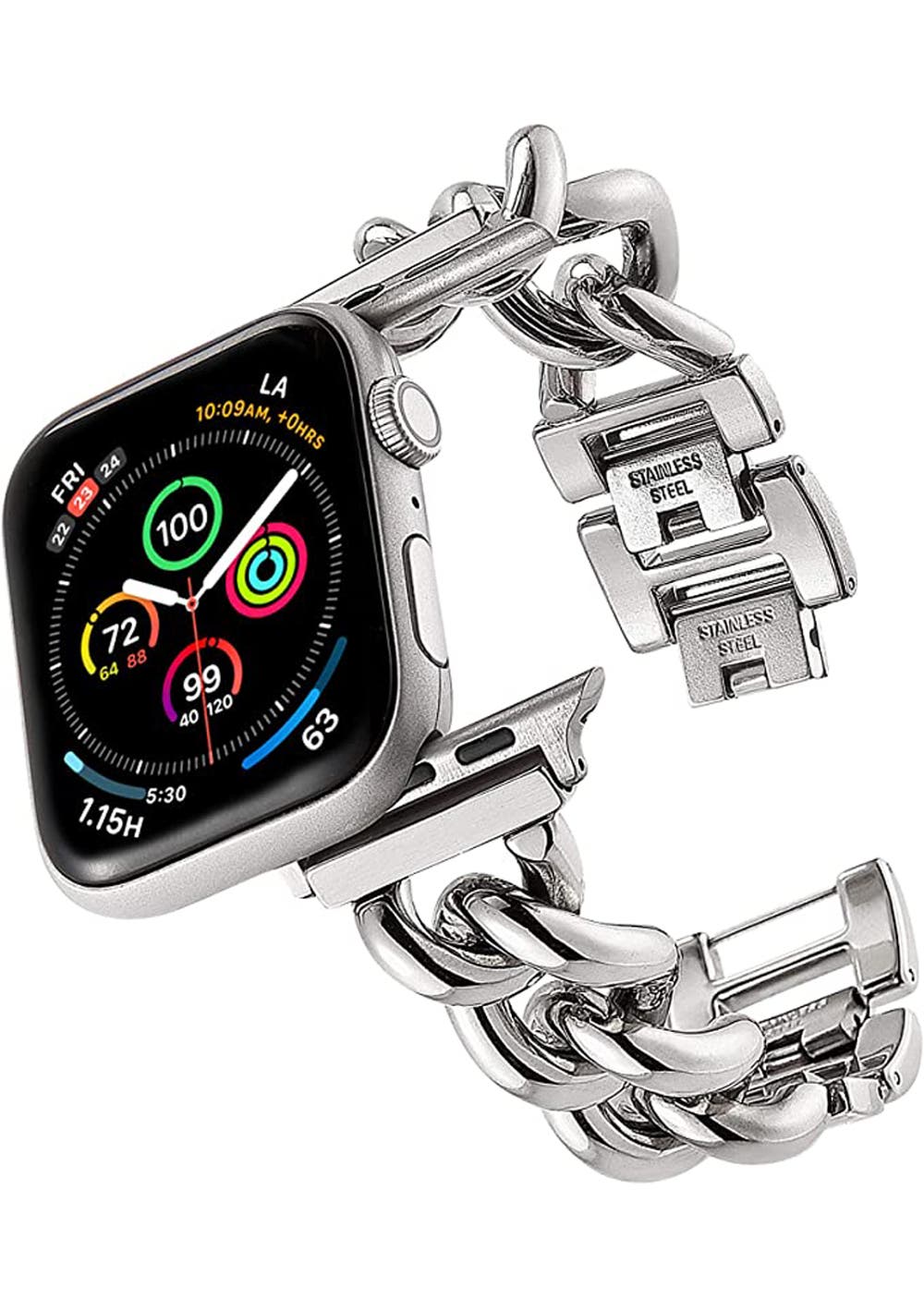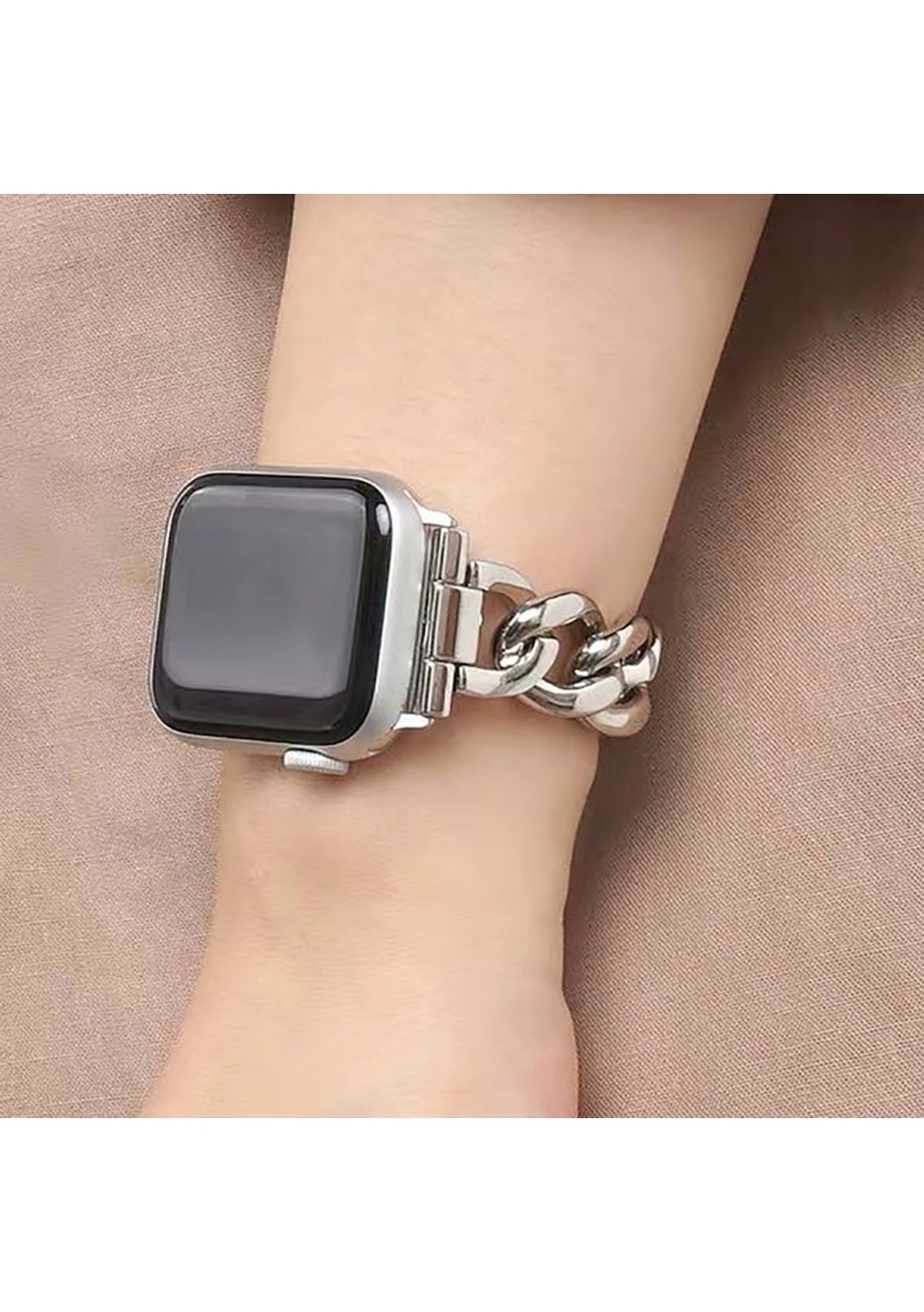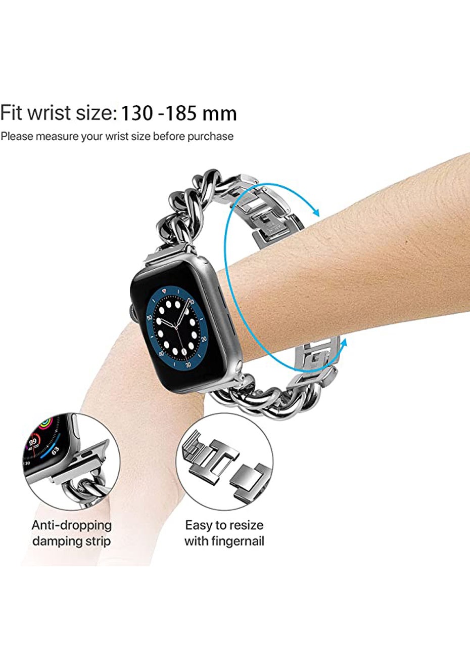 Stainless Steel Chain Bracelet Compatible With Apple Watch Band for 38MM 40MM 41MM-Sliver