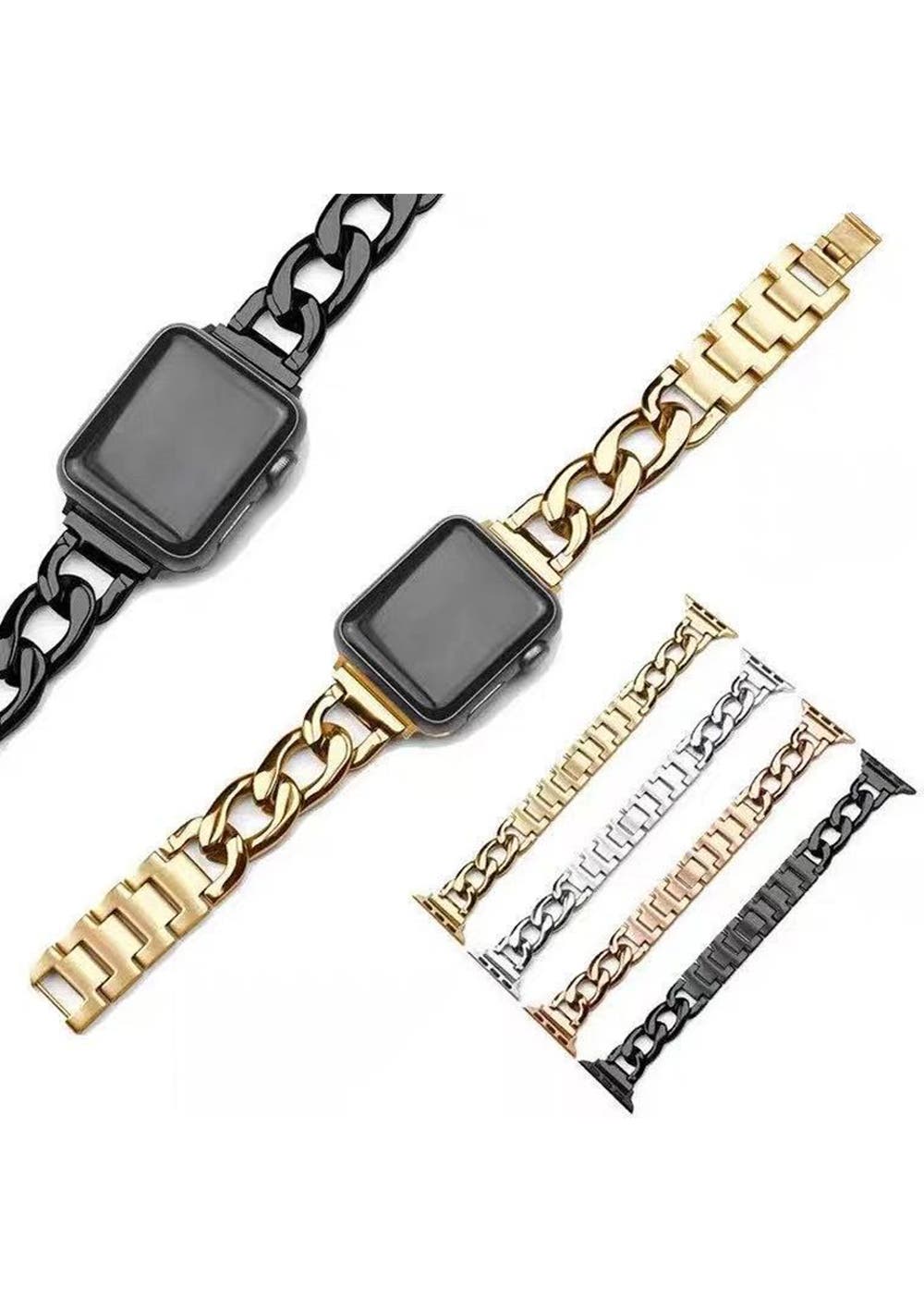 Apple Watch Stainless Steel Chain Bracelet for 38 40 41 mm Rose Sliver<br>Material: Stainless Steel<br>Product dimensions (LWH): 32×170mm <br>Package dimensions (LWH): 18 x 5 x 0.5 cm<br>Weight: 50 g<br>Features<br> Compatible with Apple Watch Band 38mm 40mm 41mm Compatible with Apple Watch Bands Series 7 6 SE 5 4 3 2 1, available in gold, rose gold, silver, and black classic colors.<br> You don't need to worry about losing luster or causing skin irritation after use. <br> This Stainless Steel Chain Bracelet Band is made of high-quality 304 stainless steel with a vacuum plated surface that is resistant to fading and is friendly to sensitive skin for long term wear.<br> Just open the small buckle and resize the strap without any tools, Fits Wrists 130mm - 185mm<br> Package Include<br> 1 x Apple Watch Stainless Steel Chain Bracelet