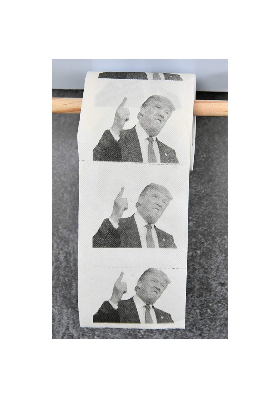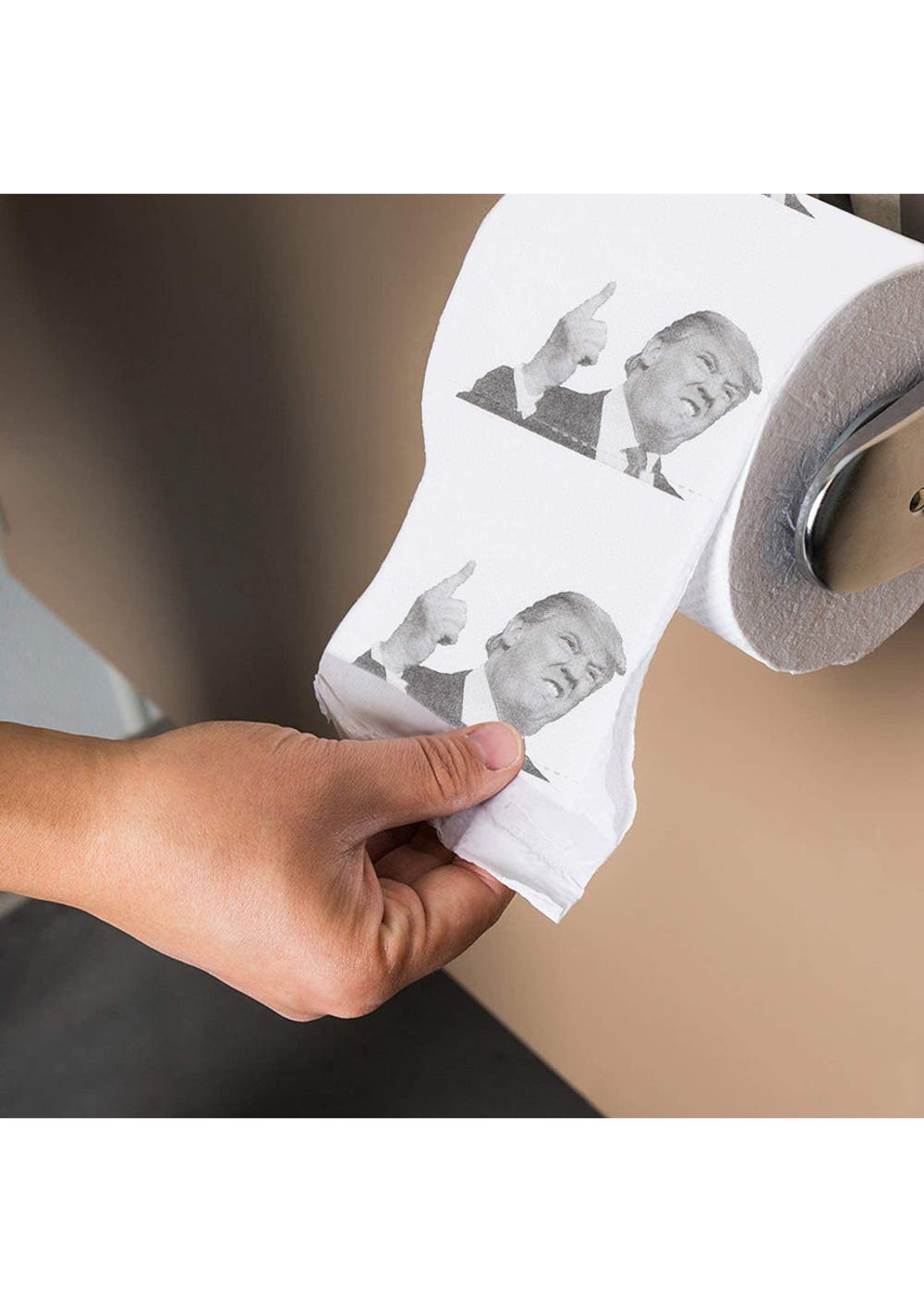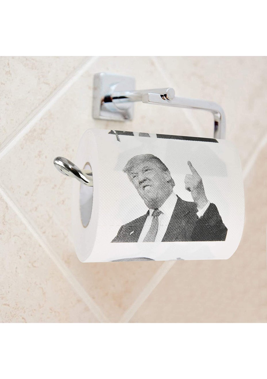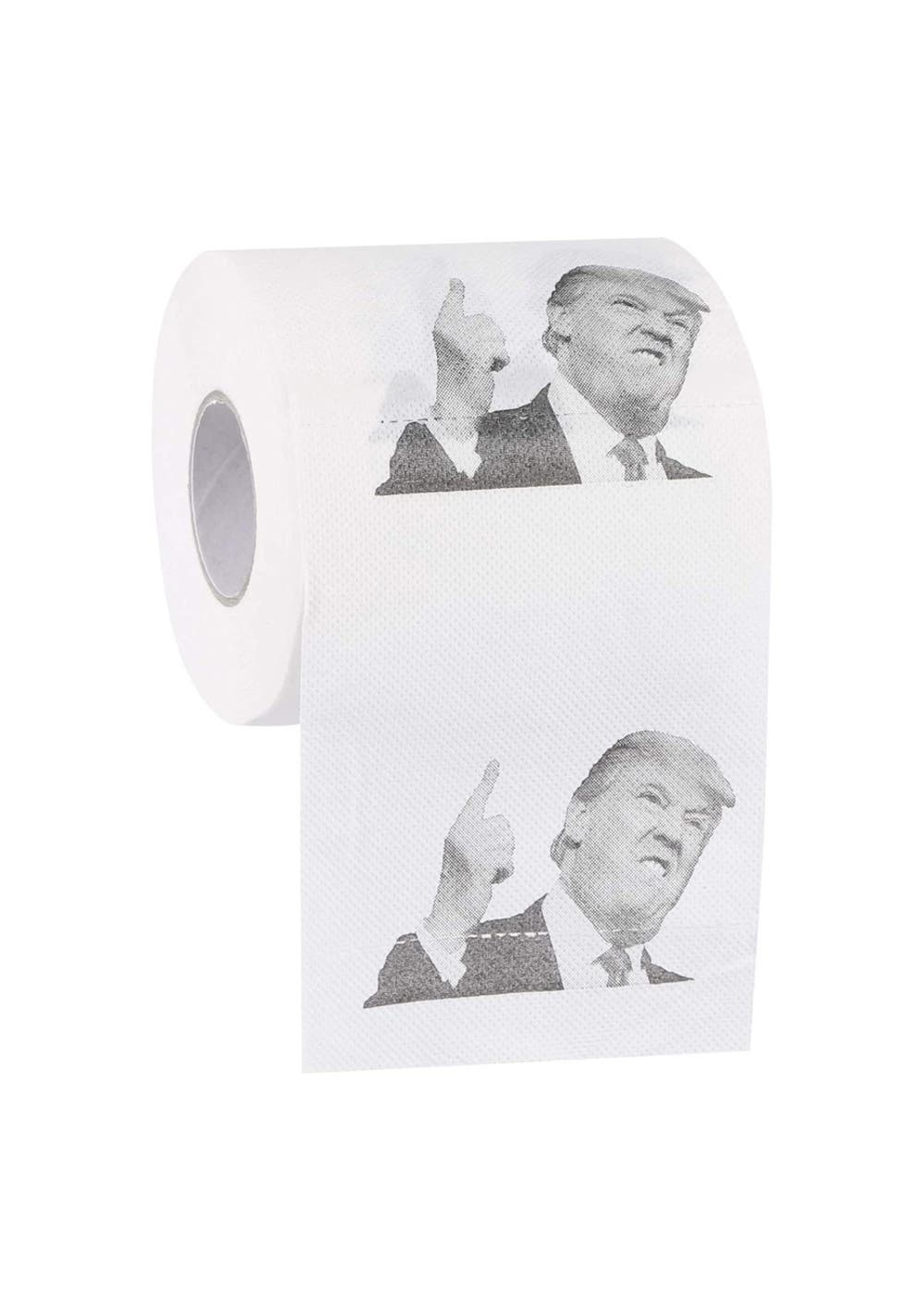 DONALD TRUMP’S FACE TOILET PAPER:the face of “The Donald” printed on each square throughout the entire roll: It can serve you as a gift, or serve the original TP purpose in your bathroom!