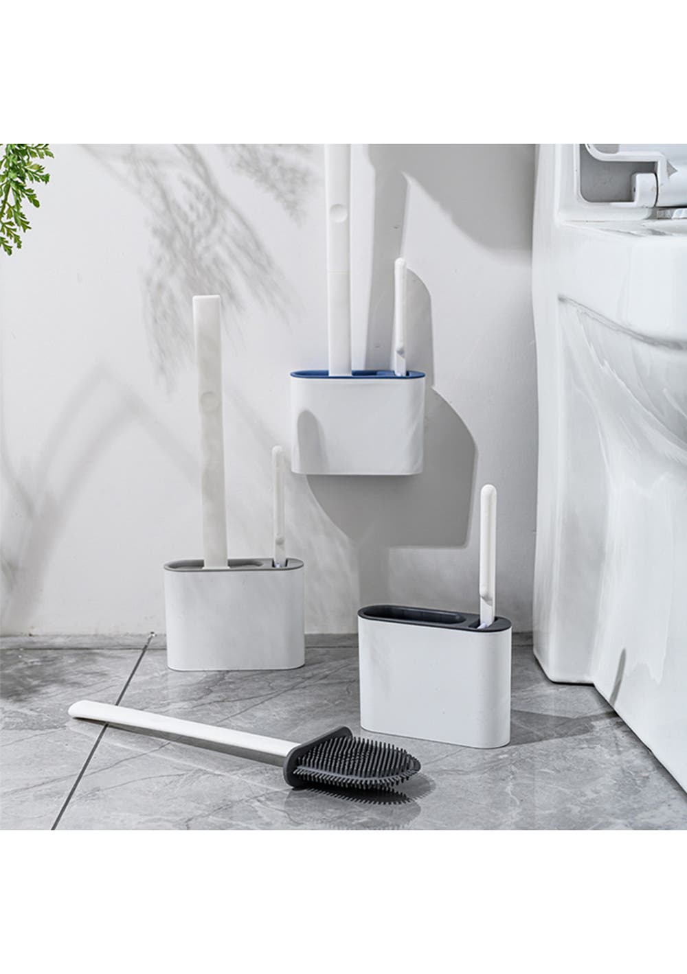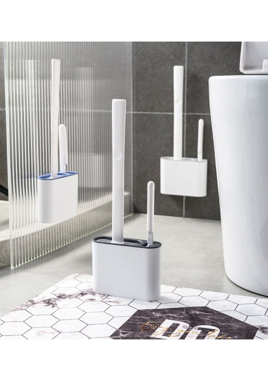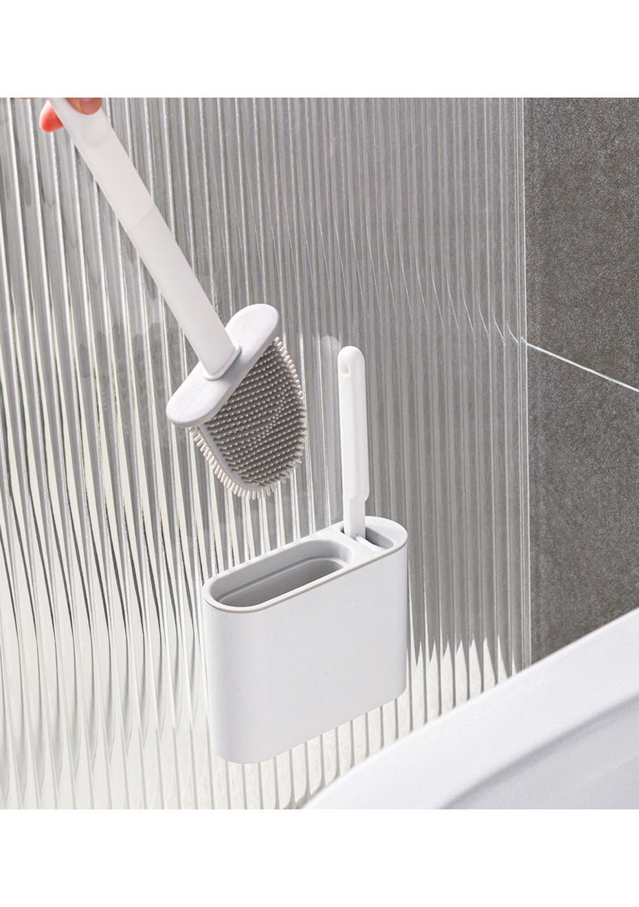 2 in 1 Flex Silicone Toilet Brush with Holder-Dark Gray