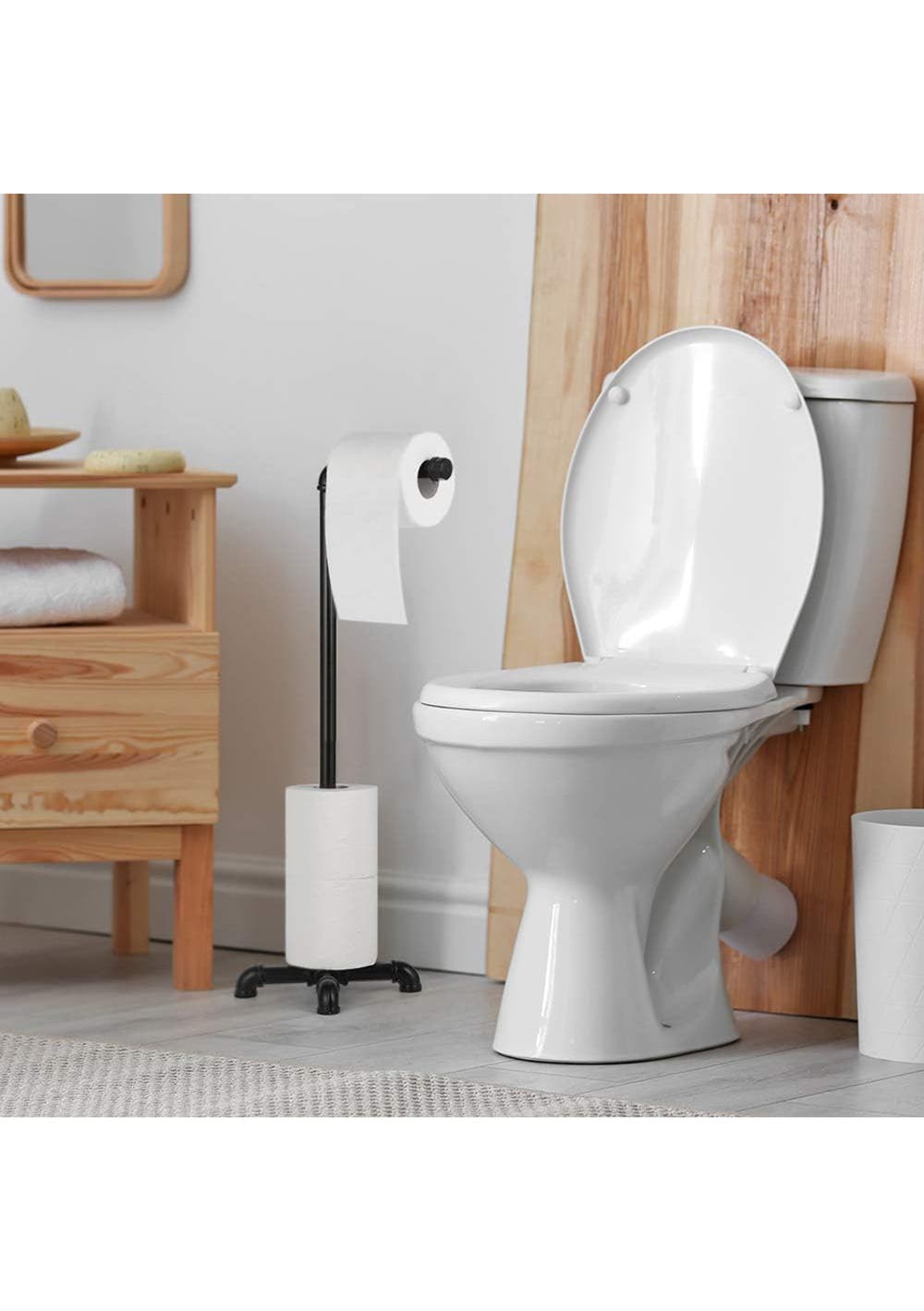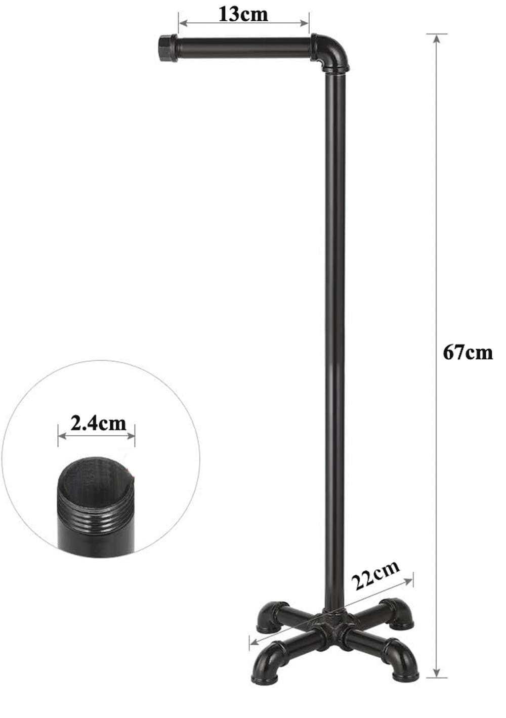 Industrial Pipe Free Stand Toilet Paper Holder Stand<br>Material: Iron<br>Product dimensions (LWH): 22x22x67cm<br>Package dimensions (LWH): 90x12x12cm<br>Weight: 1.2KG<br>Key Features:<br>• Sturdy & Durable: Crafted from robust malleable iron, this holder is designed to last, further enhanced by its sleek matte black finish.<br>• 【INDUSTRIAL STYLE】: Made of high-quality iron material that guarantees strength and hardness. Parts exposed to the environment are coated with black paint to prevent rust, enhancing its vintage feel. Its authentic black metal pipe design complements various decors, especially those leaning towards industrial, rustic, or eclectic aesthetics.<br>• 【STORAGE FUNCTION】: This MOOACE bathroom toilet paper holder is designed for convenience. It can dispense one roll quickly and also features reserve storage capable of holding up to 2 or more standard-sized toilet paper rolls.<br>• 【COMPACT DESIGN】: With dimensions of 22X22X67CM, this free-standing toilet paper holder optimizes space. It's perfect for guest bathrooms, half baths, powder rooms, campers, and confined spaces.<br>• 【SIMPLE ASSEMBLY REQUIRED】: The product is shipped unassembled, but assembling it is straightforward. Customers only need to screw all the pieces together. The assembly process is swift, ensuring a hassle-free experience. For the best results, it's advisable to clean the pipe with a wet towel before assembly.<br>• 【CUSTOMER FIRST】: We prioritize quality and customer satisfaction. If you encounter any issues or are unsatisfied with the product, please contact us. Our team is committed to assisting you!<br>Package Includes:<br>• 1 x [¾" Cast Iron Pipe Cap]<br>• 5 x [¾" 90 Degree Elbow Connector]<br>• 1 x [¾" 5-Way Side Outlet Tee]<br>• 4 x [¾" Cast Iron Industrial Pipe -6cm]<br>• 1 x [¾" Cast Iron Industrial Pipe -15cm]<br>• 1 x [¾" Cast Iron Industrial Pipe -60cm]