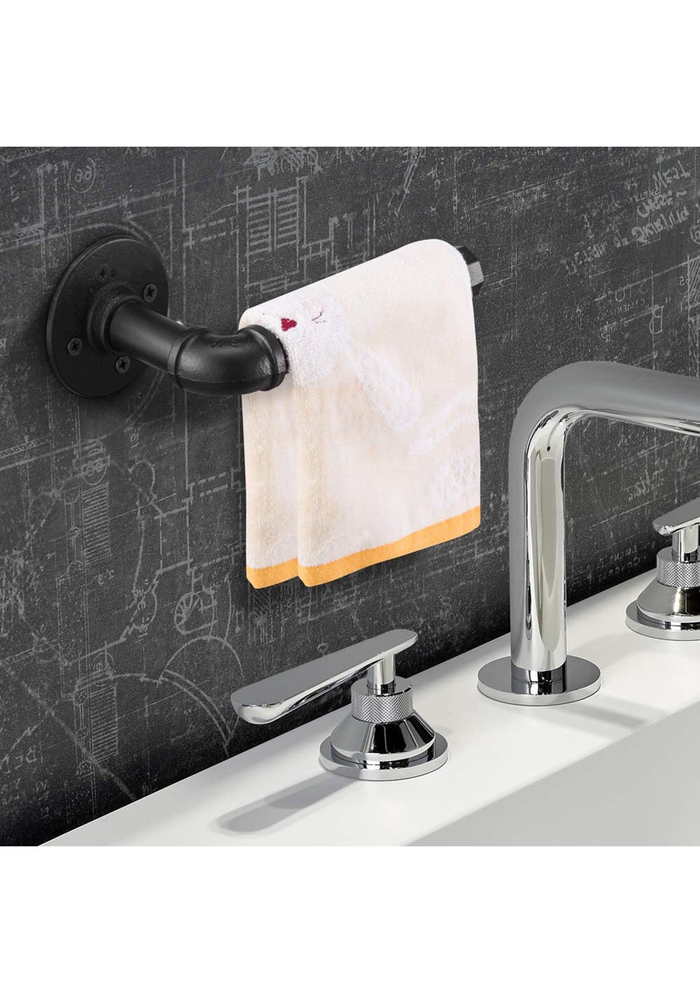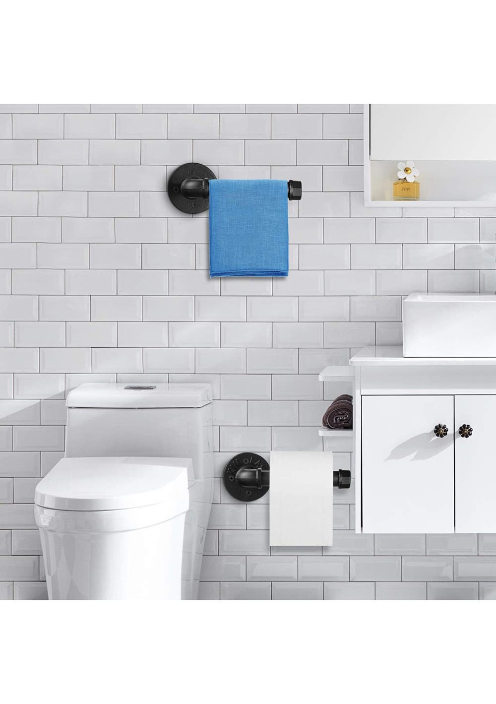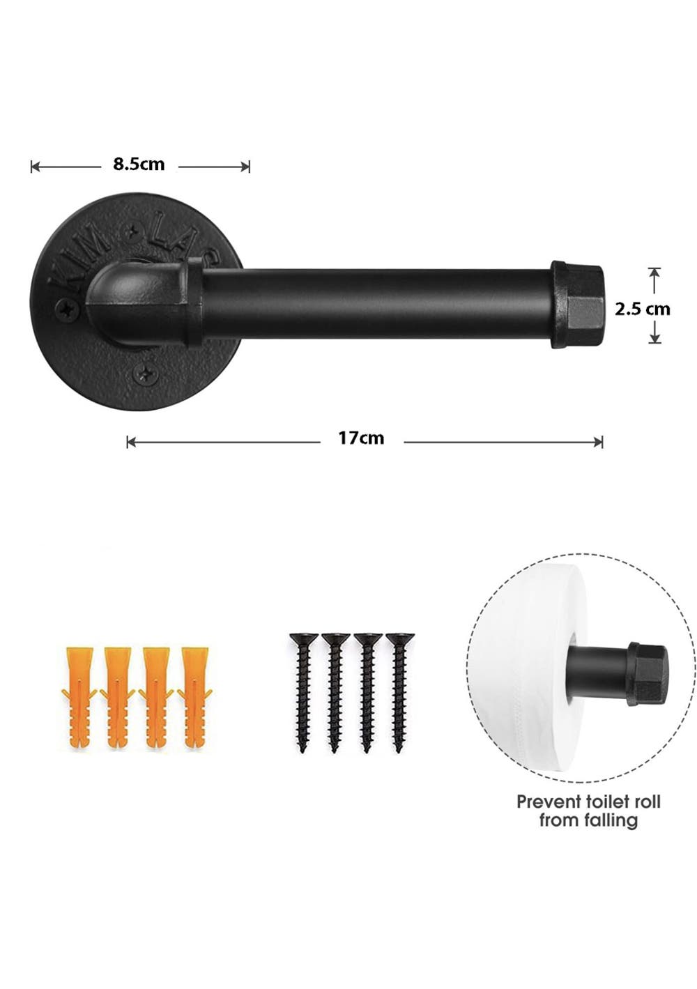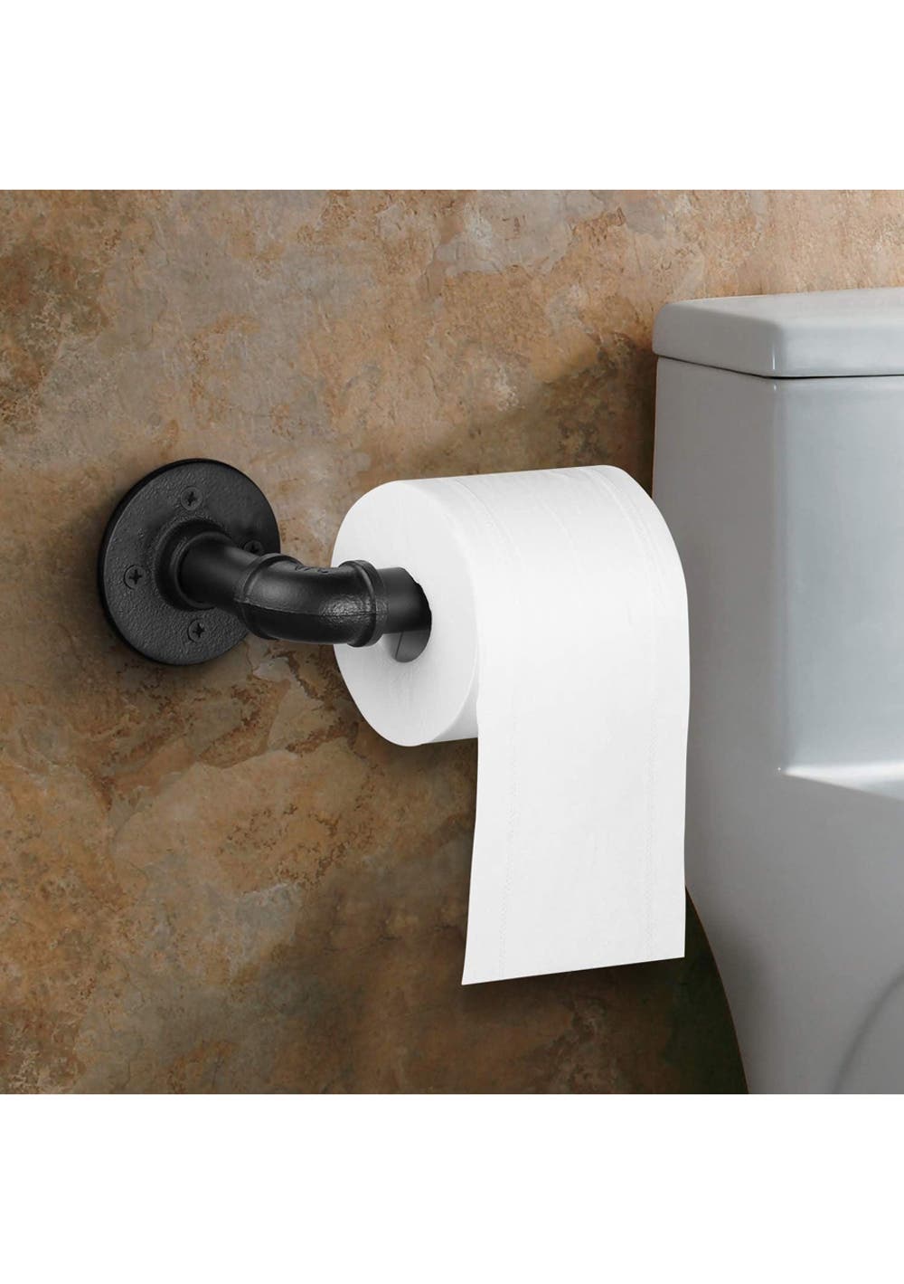 Industrial Pipe Toilet Paper Holder<br>Material: Iron<br>Package dimensions: Please provide the dimensions<br>Feature<br>About this item<br>• Black Matte Surface: This product comes with a black matte surface finish, adding an elegant touch to its industrial design.<br>• 【Vintage Industrial Style】: This toilet paper holder exudes a blend of vintage industrial style and modern DIY charm, adding character to any space. Whether in your bathroom, kitchen, or bedroom, this black pipe toilet paper holder enhances the decor.<br>• 【Multiple Functions】: More than just a toilet paper roll holder, this wall-mounted design can also serve as a hand towel holder, ideal for use in the bedroom, kitchen, and bathroom.<br>• 【Wide Application】: The farmhouse-style toilet paper holder is perfect for any space, be it your hallway, bedroom, foyer, closet, lobby, waiting room, bathroom, kitchen, or entrance. Its rustic aesthetic imparts a homely feeling to the area.<br>• 【Quality Material】: Made of high-quality iron, this industrial pipe paper holder is electroplated with a black finish to protect against rust, ensuring durability and long-lasting use.<br>• 【Easy Installation】: The package contains 1 pipe holder and 1 set of wall mounting fittings. Installation is straightforward without the need for any annoying stickers or glue!<br>Package Includes<br>• 1 x Industrial Pipe Toilet Paper Holder(Black Matte Surface)<br>• 1 x Screws Set<br>
