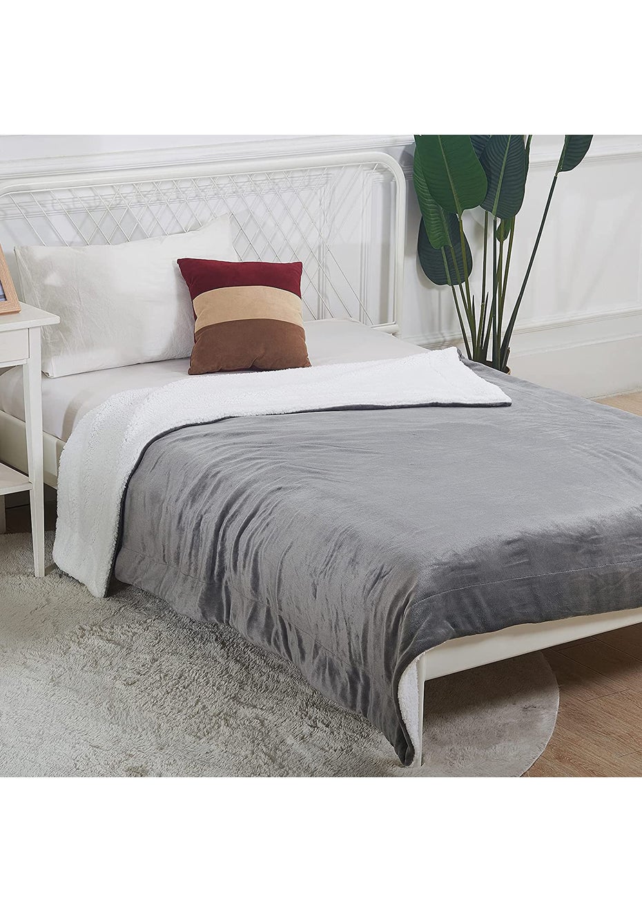Thick Fuzzy Soft Sherpa Fleece Bed Sofa Blankets-Gray
