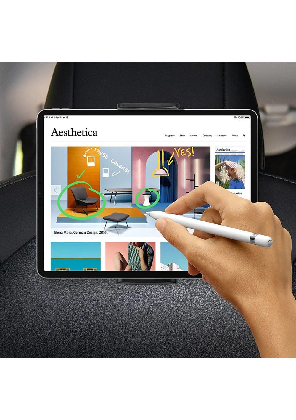 Tesla Model Y 3 Headrest Tablet Mount Material: ABS Product dimensions (LWH): 14x6.5x6.5 cm Package dimensions (LWH): `15x6 x7cm Weight:145 g KEY FEATURES:  Multi-model Matching: Our rotation holder is specially designed for 2016 2017 2018 2019 2020 2021 2022 Tesla Model 3 and 2022 2021 2020 Model Y. Fit most smartphones and iPad Pro (not suitable for 12.9-inch iPad Pro).  Comfortable Experience: Our Tesla Tablet mount with 360° rotation function, providing nearly unlimited angle adjustment, so you can easily get the most comfortable viewing enjoyment.  Excellent Material: Made of ABS plastic, sturdy and durable.The back seat table holder comes with hooks to hang some snacks or tools needed when watching videos, convenient and practical.  Easy Install: Just snap the bracket into the gap in the back of the seat, can engage in a firm fix, safe will not fall off.  Thoughtful Accessories: The edge of the silicone will not damage the phone tablet. A thoughtful and practical accessory for Tesla Model 3 Model Y.  Package Include  1 x Tesla Model Y 3 Headrest Tablet Mount