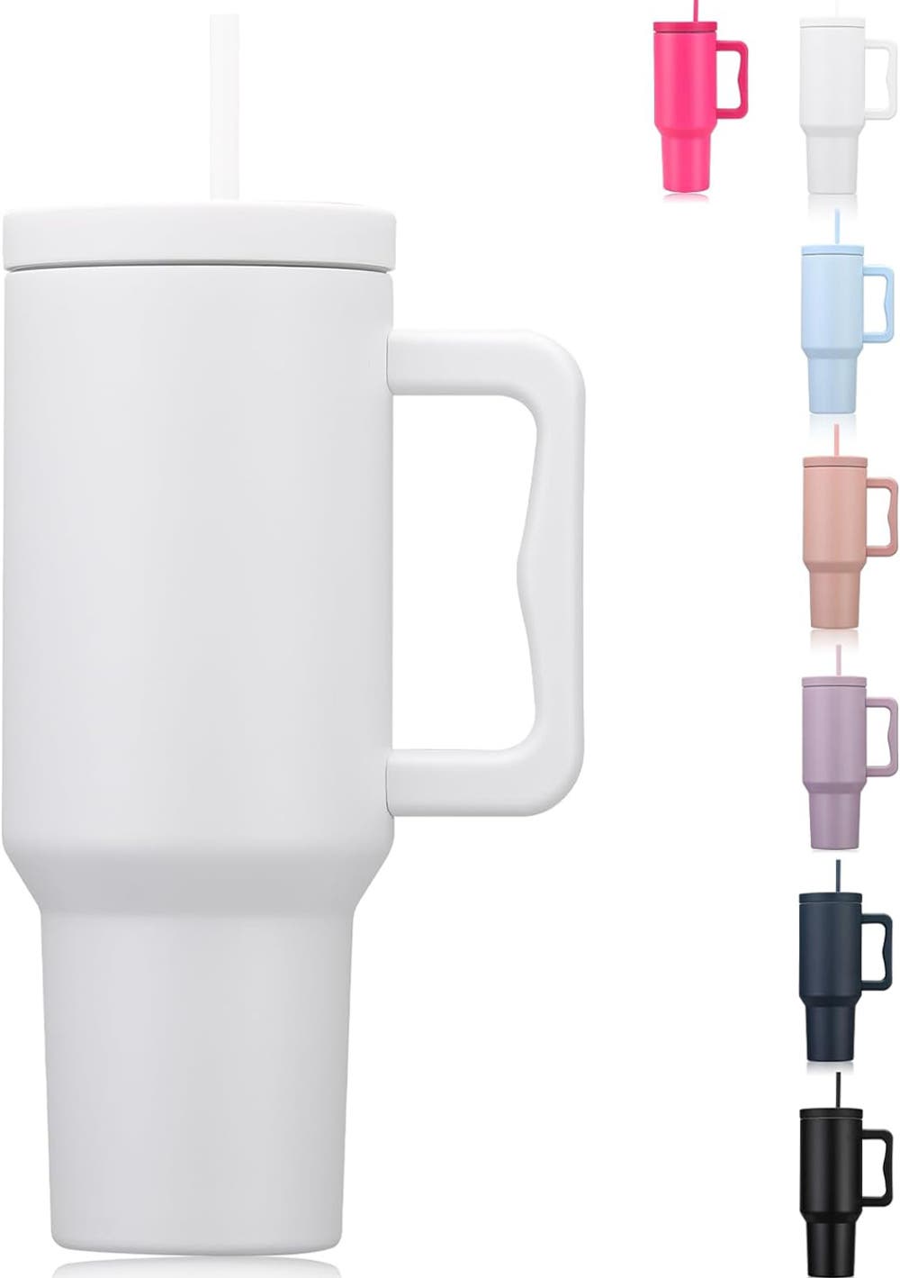 1200ML Tumbler with Handle Fit Car Cup Holders - White