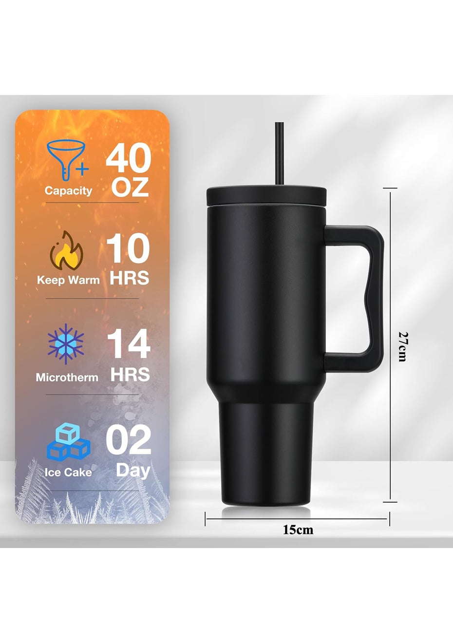 1200ML Tumbler with Handle Fit Car Cup Holders <br>Premium Construction for Durability and Style<br>• Exterior Material: 201 Stainless Steel with a durable powder coating.<br>• Interior Lining: 304 Stainless Steel Product Dimensions: Φ9.9×27cm.<br>• Package Dimensions: Packaged securely at 28x14.5x11cm.<br><br>Weighing : 660g <br><br>Advanced Thermal Innovation<br>• Boasting an upgraded lid for superior seal and extended temperature retention.<br>• Keep Warm & Cool: Double-walled, vacuum insulation maintains hot drinks for 10 hours, cold for 14 hours.<br>• Leak-Proof Technology: Enhanced lid design equipped with a temperature-resistant straw to prevent spills and withstand daily use.<br>Environment and Health First<br>• Safeguard Your Health: BPA-free, using only food-grade stainless steel for the inner lining.<br>• Sustainably Minded: Comes with reusable straws to lessen plastic waste and protect our environment.<br>• Effortless Maintenance: Dishwasher safe for easy cleaning, or simply hand wash.<br>Travel-Optimized<br>• Cupholder Compatible: The tumbler snugly fits in most car cup holders, perfect for on-the-go hydration whether in daily commutes or outdoor adventures.<br>Package Contents for the Eco-Conscious Traveler:<br>• 1x Robust Tumbler with Handle<br>• 1x High-Temperature Resistant Straw<br><br>
