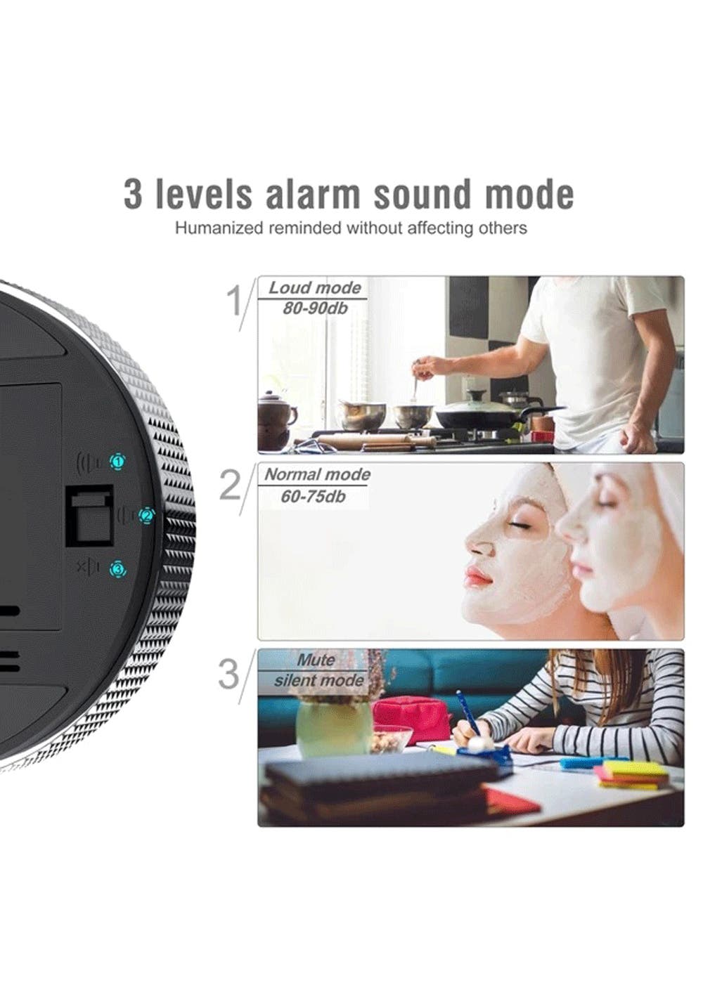 LED DISPLAY & ADJUSTABLE VOLUME - Clear large black 3 inch display with white numbers forming a nice contrast with bright function - Two alarm volume: Loud (80-90dB), Soft (60-75dB) and a mute level