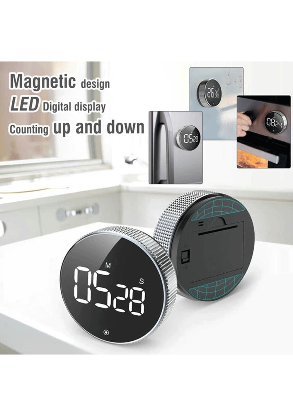 UNIQUE DESIGN & MAGNETIC - Designed with a special metal knob, the digital timer counts down from 99 minutes and 55 seconds to zero, or as a stopwatch counts up from zero to 99 minutes and 55 seconds. Built in powerful magnet on the back for placing on any metal surface directly for one hand use