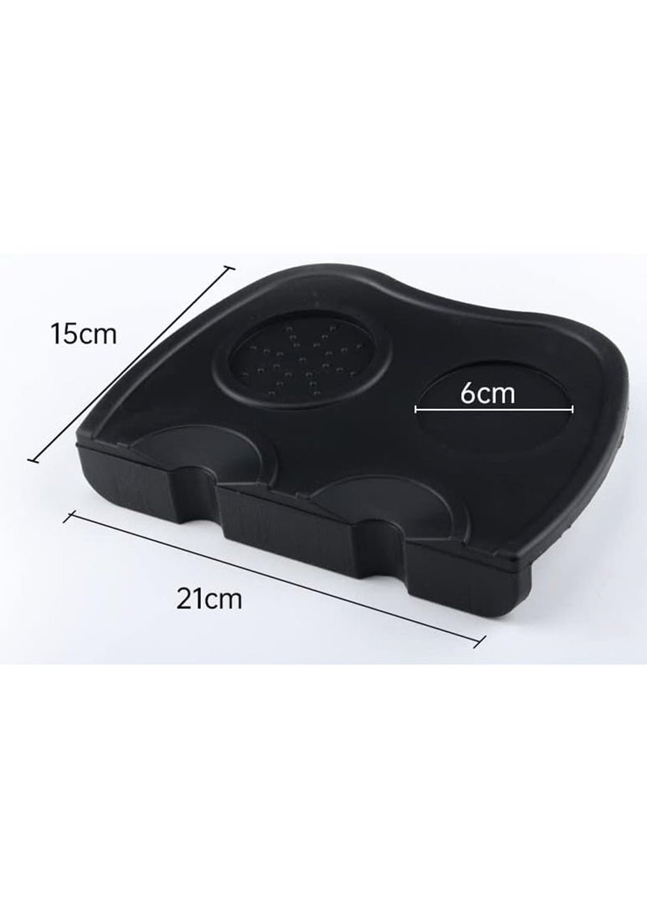 Espresso Tamper Mat Coffee Tamper Tool<br>Material: Silicone Gel<br>Product dimensions (LWH): 21x15x3.5cm<br>Package dimensions (LWH): 21x15x3.5cm<br>Weight: 240g<br>Features:<br>• Anti-Slip Tamping Pad: The high-quality silicone gel can be attached to any countertop corners, preventing slipping and improving tamping stability. It also protects your countertop from damages caused by portafilters. The pad is crack-resistant and slip-resistant, ensuring a stable tamping process.<br>• High-Quality Material: Made of food-grade silicone gel, the tamper mat is non-toxic, odorless, durable, and sturdy. It can withstand temperatures up to 230℃, ensuring safety during use.<br>• Easy to Clean: The tamping mat is highly flexible and durable, making it easy to roll up for storage. Cleaning is simple with just soap and water; you can easily rinse it off.<br>• Compact & Sturdy: The small size of the tamping pad makes it easy to store, and it does not occupy much countertop space.<br>• Coffee Tamper Station: This mat helps you make full use of your space, whether at home, coffee shops, kitchens, baking houses, tea rooms, and more.<br><br>Package Include:<br>• 1 x Espresso Tamper Mat Coffee Tamper Tool<br>