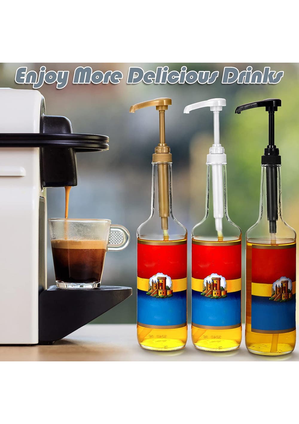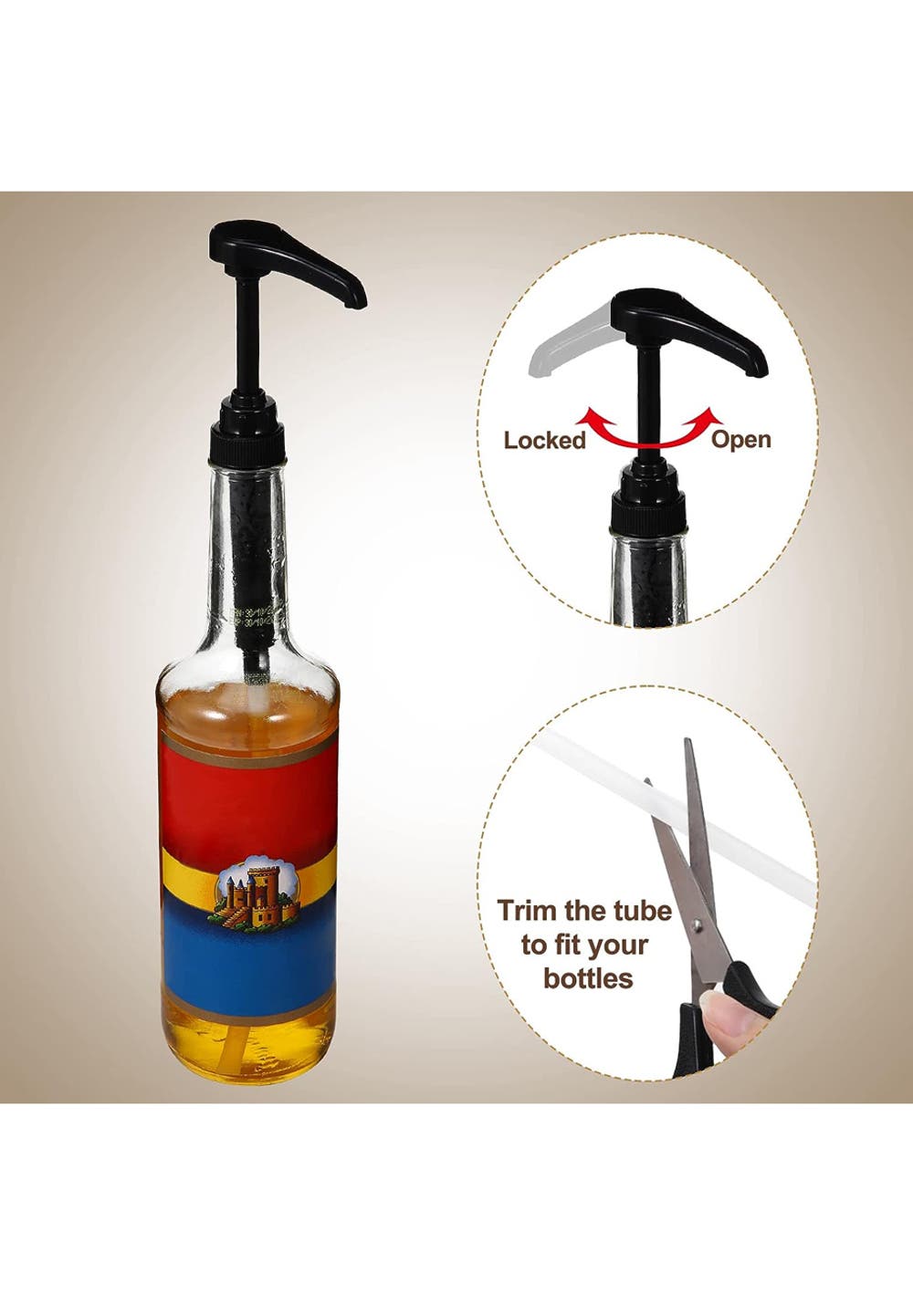 4Pack Syrup Pump Dispenser Pumps For 750ML Bottles – White<br>Material: PP PVC<br>Product dimensions (LWH): Each 7.5×2.8×19.5cm<br>Package dimensions (LWH): 18x8x3cm<br>Weight: 120g<br>Features:<br>• Precise Measurement: Each stroke dispenses 1/4 oz of syrup, ensuring you get just the right amount every time. Compatible with most 750mL (Φ25mm) syrup bottles, it guarantees that your beverages maintain their desired flavor without an overpowering sweetness.<br>• Durable & Hygienic: Crafted from reliable materials, this syrup pump is not only durable but also reusable. It's designed for longevity and easy cleaning. The ability to set it open or locked closed further ensures no unwanted spills or contaminants.<br>• User-Friendly Design: With a 360-degree rotation capability, this pump is both lockable and unlockable, ensuring a drip-free experience with every use. This unique design prevents unnecessary spills and keeps your area clean and organized.<br>• Versatility at its Best: While it's perfect for coffee syrups, this pump isn't limited to just that. It's suitable for a plethora of syrups including chocolate, vanilla, hazelnut, and many more. Whether it's for your coffee, ice cream, or pie, this dispenser pump can handle it all. A must-have for every kitchen and coffee bar.<br>• Customizable Length: The tube of the pump can be trimmed according to your specific needs, ensuring a perfect fit for different bottle heights.<br>• <br>Inside the Package:<br>• 4 x Syrup Pump Dispenser Pump