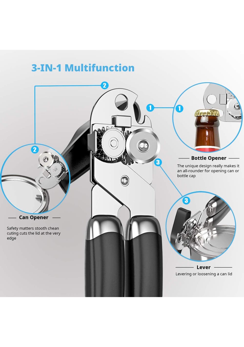 3-in-1 Can Opener Material: 410 Stainless Steel, Chrome-Plated Iron, PP Plastic Package Dimensions (LWH): 20 x 5 x 6 cm Weight: 220g Body Dimensions: 19.5 x 5 x 5 cm Handle Length: 11.5 cm Knob Length: 8 cm Key Features: Multifunctional Can Opener: This tool not only opens cans with ease but also lifts lids, opens bottles, and levers or loosens can lids without injuring your hands. It's a versatile 3-in-1 hand can opener that enhances your kitchen efficiency. Super Sharp Stainless Steel Blade: The ultra-sharp blade cuts through metal cans smoothly and cleanly, leaving a smooth and delicate edge. Made from stainless steel, the blade is guaranteed never to rust. High Quality: Constructed from premium 430 stainless steel with an electroplating process and high-quality plastic, this can opener features a strong and resilient body that won’t bend or break. It’s safe to use and won’t leach harmful chemicals into your food. Thoughtful Design: The ergonomic handle provides a comfortable and secure grip, preventing slipping or falling. Easy to use and gentle on your fingers, it's suitable for family use, restaurant use, or as a gift. Package Includes: 1 x Can Opener