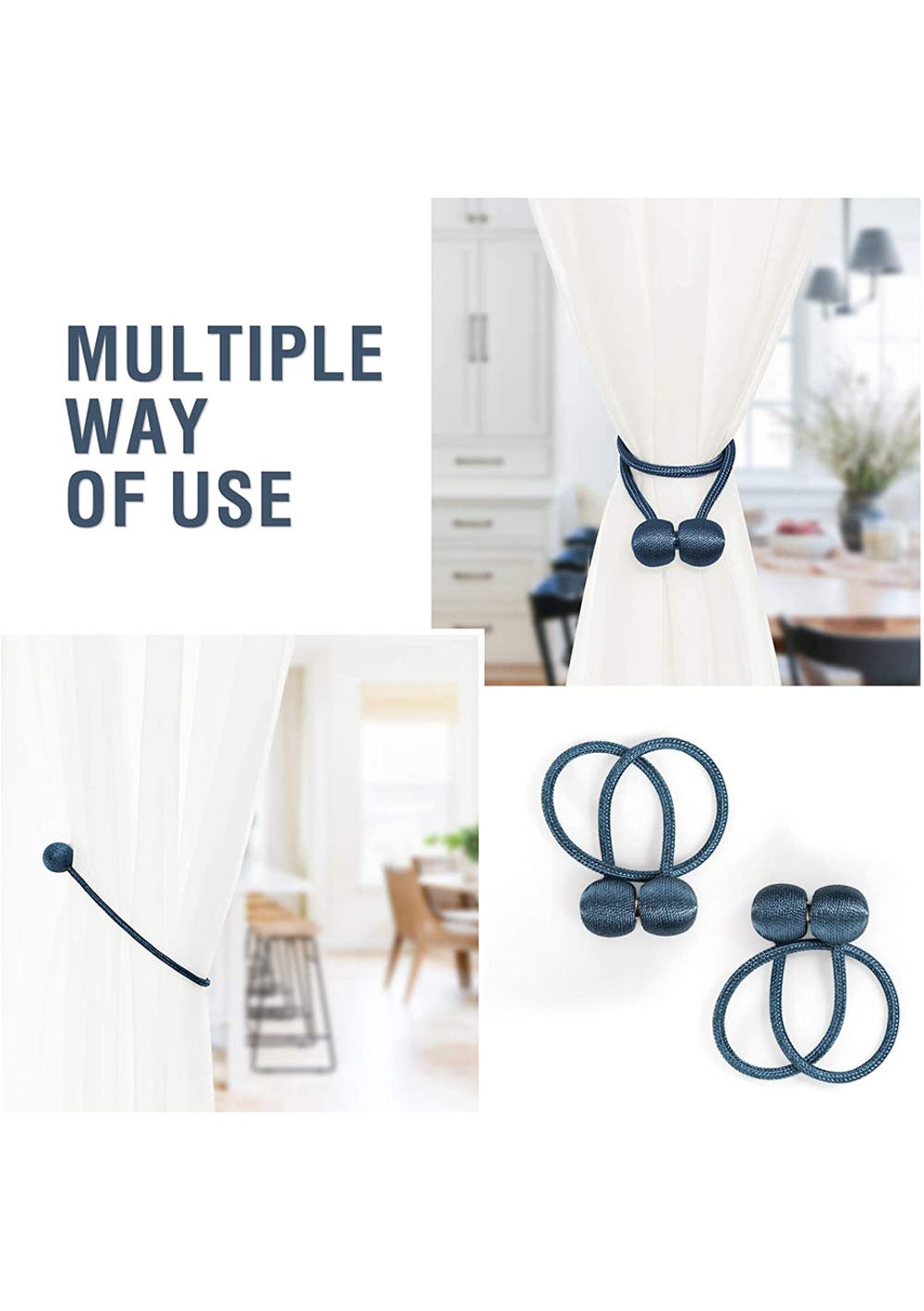 2 Pairs Window Curtain Tiebacks Magnetic Tie Band-Blue