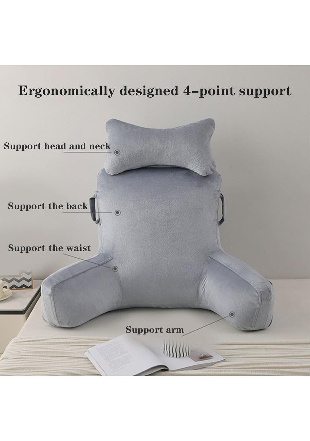 Sofa Chair Bed Reading Pillow Product Size::80×55×32cm Package Dimensions (LWH): 60 x 45 x 20 cm Weight: 3.6 kg Experience unparalleled comfort with our innovative Sofa Chair Bed Reading Pillow, expertly designed to support and enhance your relaxation time. About This Item: Adjustable Design: Tailor your support with adjustable angles for an array of bed activities, from devouring your favorite book, binge-watching TV shows, to comfortably working on your laptop. Decorative and Functional: Not just a support tool, but also an elegant addition to your bedroom decor. Its stylish design complements any room aesthetic. Easy Maintenance: Crafted from materials that are a breeze to clean, with some models featuring removable and washable covers for hassle-free upkeep. Enhanced Comfort: Offers even, cushioned support to alleviate pressure on your back and neck, promoting a healthy posture and enabling extended periods of comfort in bed. Health and Lifestyle Benefits: With stable back support, it aids in improving posture, reducing back fatigue, and enhancing overall quality of life, allowing you to enjoy bed activities minus the discomfort or pain. Package Includes: 1X Ergonomic Reading Pillow with Detachable Armrest and Back Support