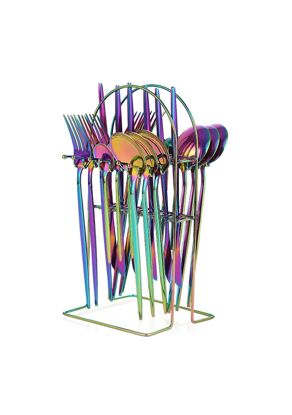 24-Piece Stainless Steel Cutlery set for 6 with stand-Chrome