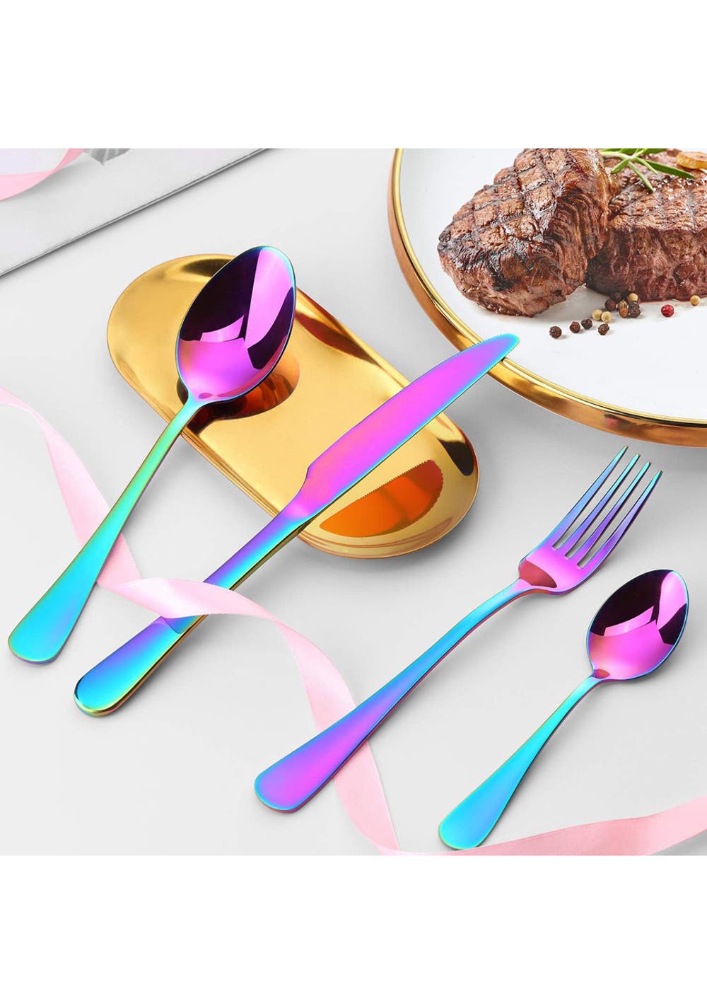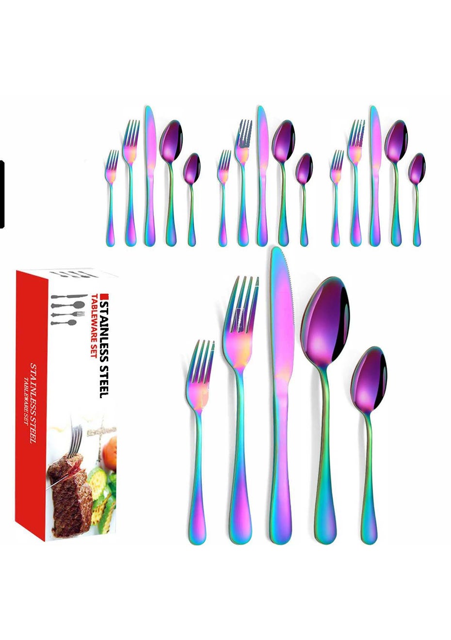 20 Pcs Stainless Steel Flatware Set Tableware Set <br>Material: Stainless Steel<br>Package dimensions (LWH): 24x5x7cm<br>Weight: 890g<br>Features:<br>• Complete Set for 4: This 20-piece cutlery set serves up to 4 people. It includes 4 each of dinner knives, dinner spoons, dinner forks, dessert forks, and teaspoons.<br>• Superior Material: Crafted using top-notch food-grade stainless steel, this set boasts exceptional health and durability features. It's non-toxic, nickel-free, and possesses excellent resistance to corrosion.<br>• Elegant & Stylish: Flaunting a classy design with sleek handles, this flatware set boasts a smooth surface with a mirror finish, elevating the aesthetics of any dining table setup.<br>• Sturdy & Comfortable: The robust construction ensures these utensils don't bend easily. Being neither too weighty nor flimsy, they strike the right balance. Thoughtfully designed, their smooth edges ensure safe usage, and their ergonomic design ensures a comfortable grip for both adults and children.<br>• Versatile Usage: This chic black cutlery set is not just perfect for daily family meals but is also apt for restaurants, hotels, celebrations, weddings, picnics, and other social gatherings.<br><br><br>What’s in the Box?<br>• 4 X Dinner Knive<br>• 4 X Dinner Spoons<br>• 4 X Dinner Forks<br>• 4 X Dessert Forks<br>• 4 X Teaspoons
