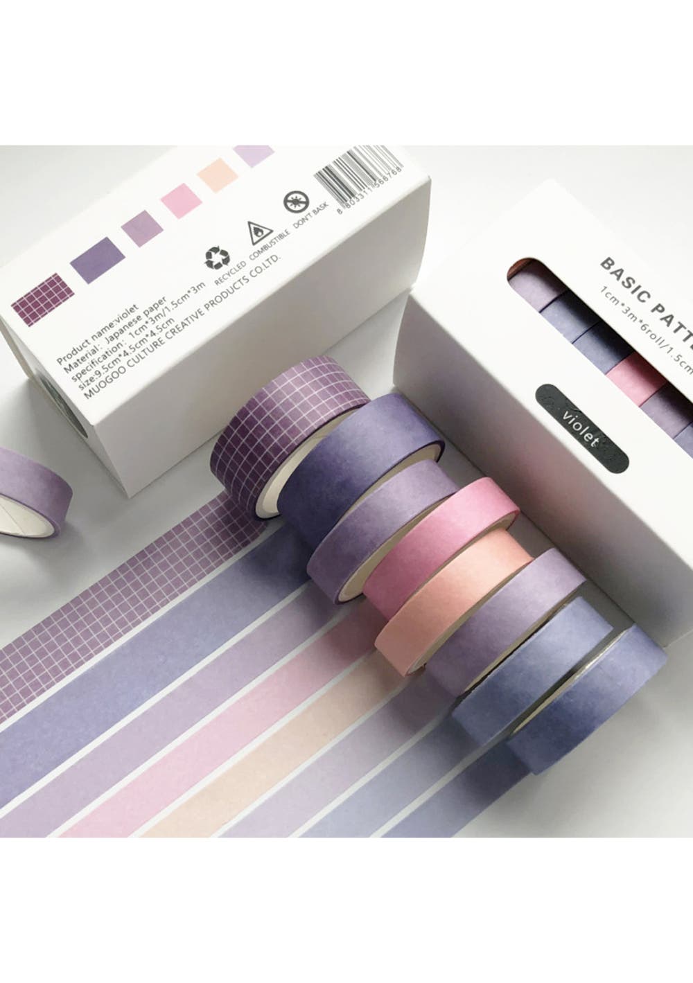 8Rolls Washi Tape Masking Tape Set-Violet 2pack