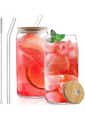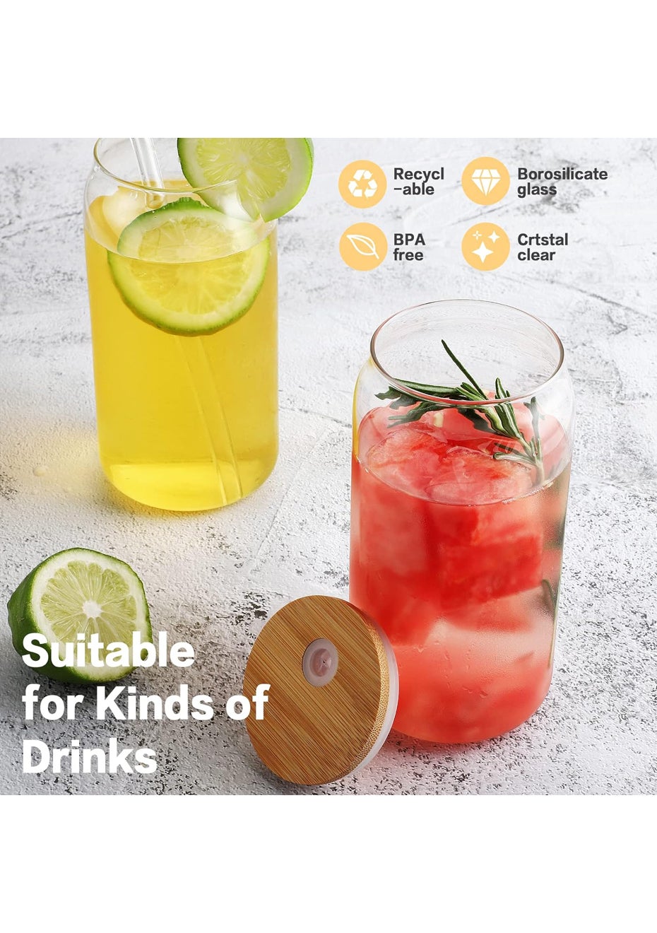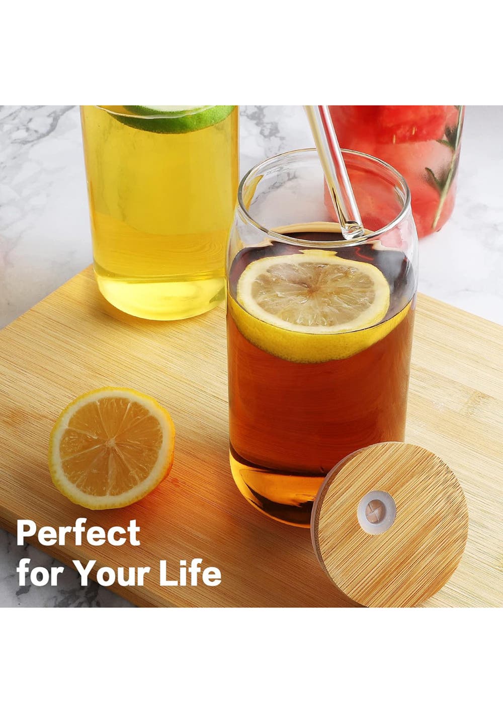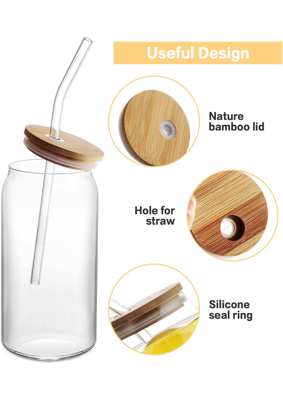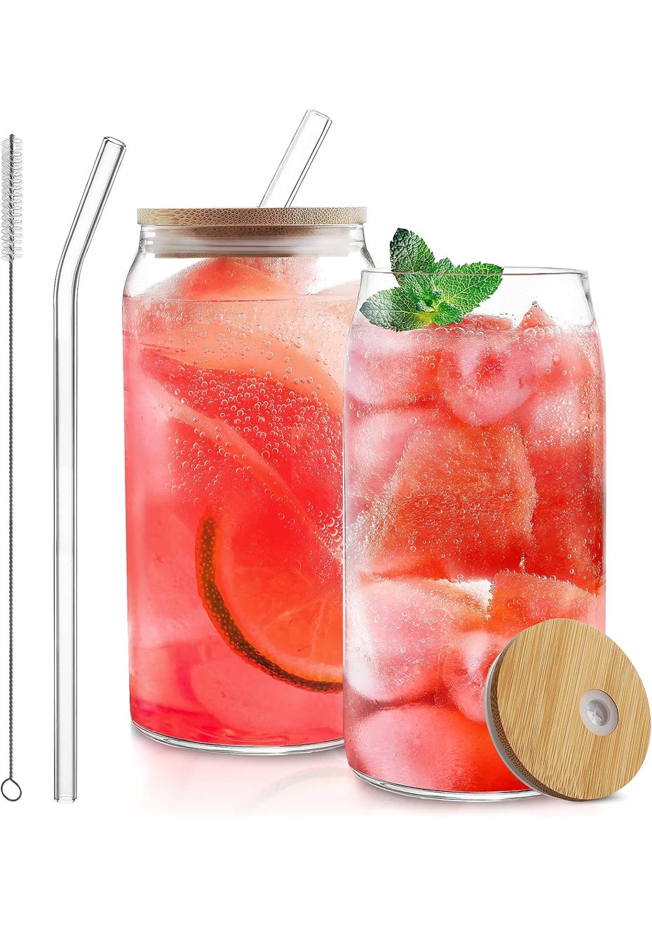 2 Pack Drinking Glass Cup with Bamboo Lid and Straw Set