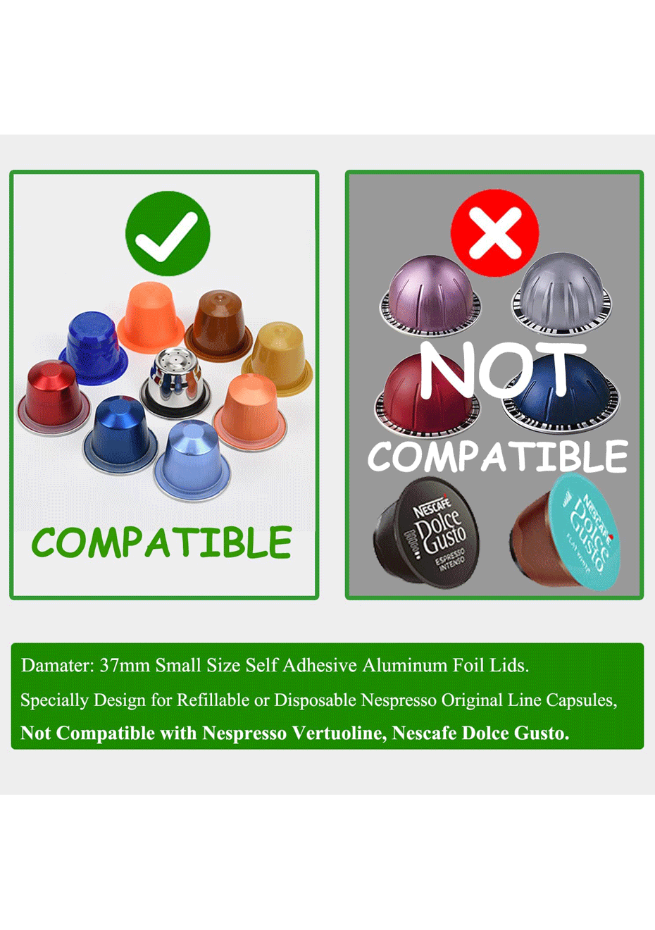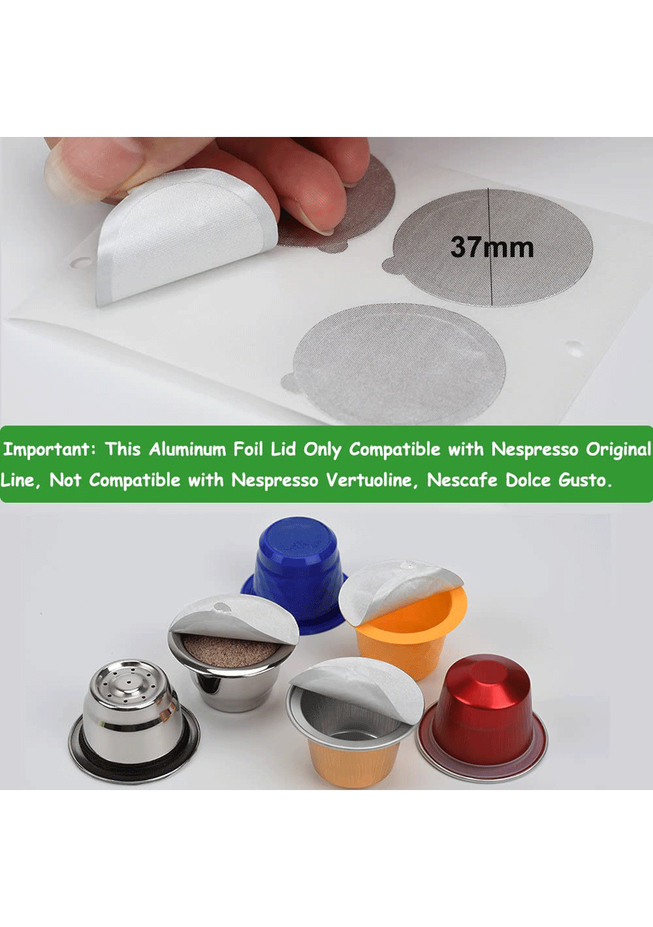 Premium Quality, Aluminum foil lid for reusable Nespresso pods coffee cup is made of aluminum foil material, can be resist 150-180 high temperature,environmentally friendly and non-toxic, reduce waste in the process and save your money.