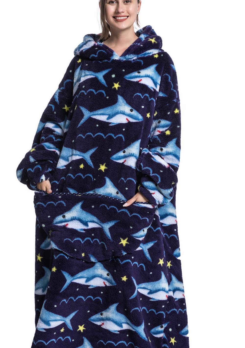 Adult Oversized Wearable Blanket Hoodie-Shark