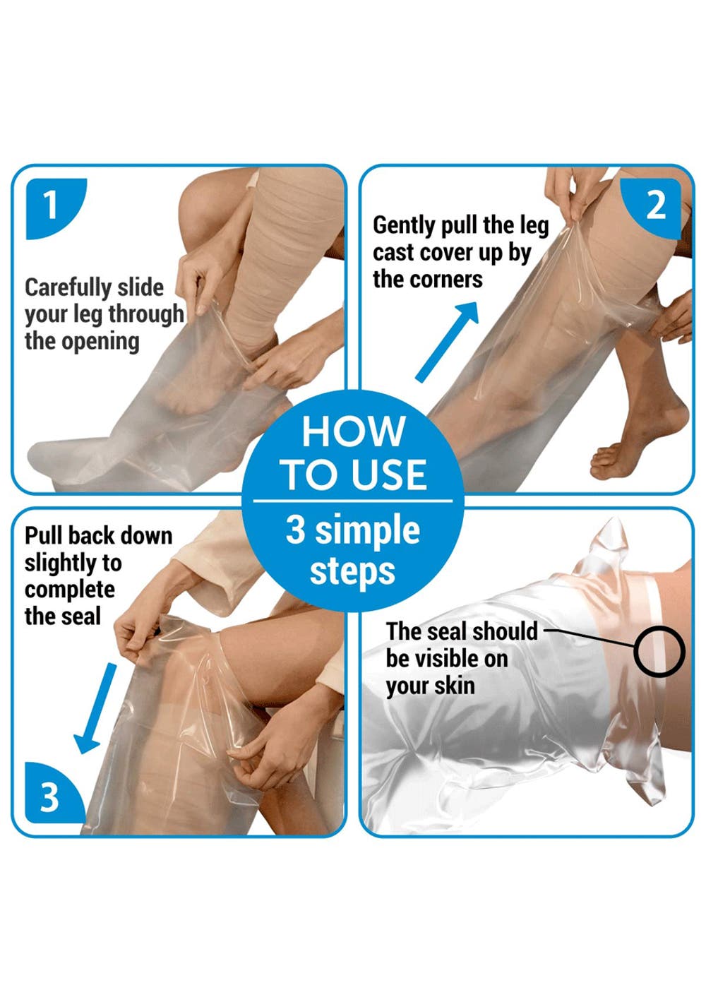 【EASY TO USE】- The waterproof cast cover Leg does not require bulky rings or extra fasteners to be watertight. Our product is easy to put on. The opening of cast covers for Leg is reinforced and not easy to break.
