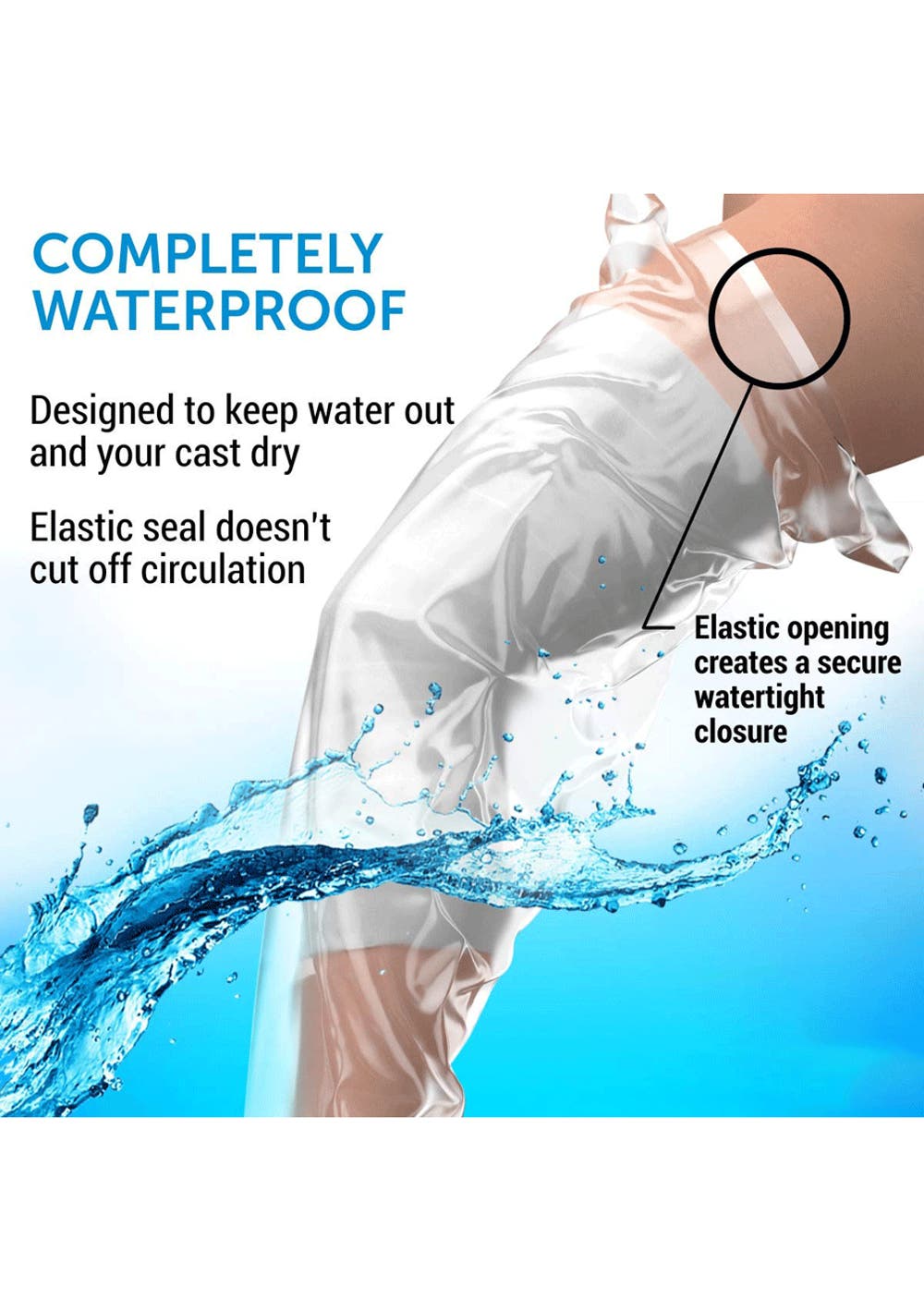 【100% WATERPROOF CAST COVER LEG】- The Leg cast cover does not require any additional sealing parts to be perfectly waterproof in the shower, and will not cut off the circulation even during a long relaxing shower. Our cast covers for shower Leg are great for waterproof protection of casts, bandages, rashes, abrasions, burns, cuts, and wound lines.