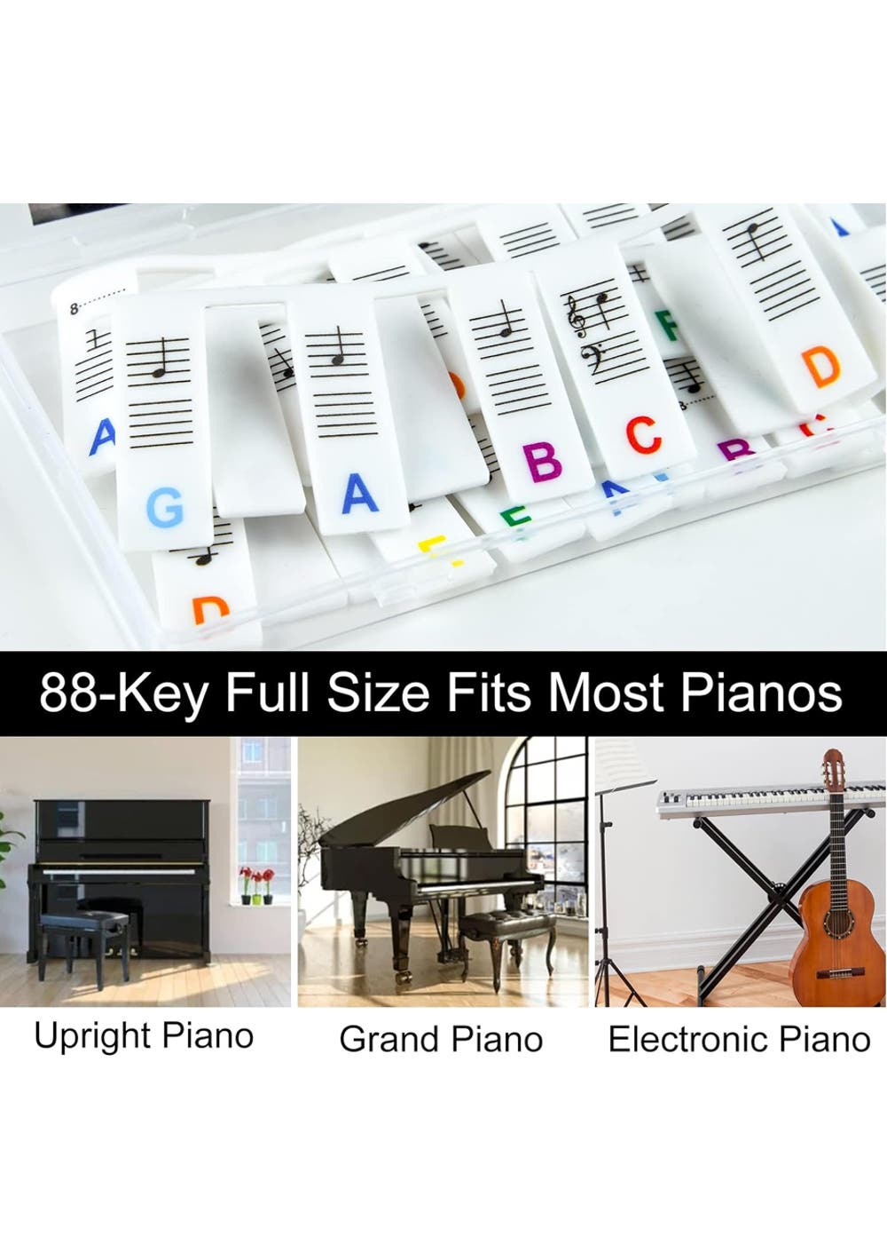 Removable Piano Keyboard Note Labels for 88-Key Instruments