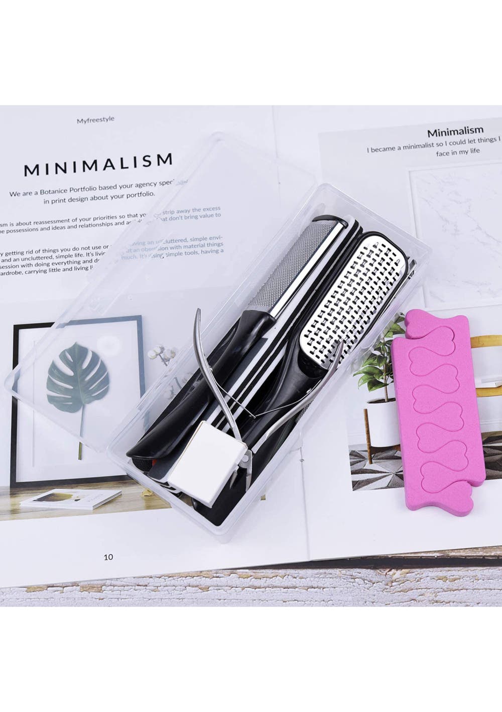 19 in 1 Foot Care Kit: The Manicure Pedicure Set Kit contains 19 tools, including foot rasp, cuticle pusher, foot clipper, scraper, callus remover, cuticle remover, foot file, nail file, nail and toenail clipper etc. Different manicure pedicure tools to meet your different needs.