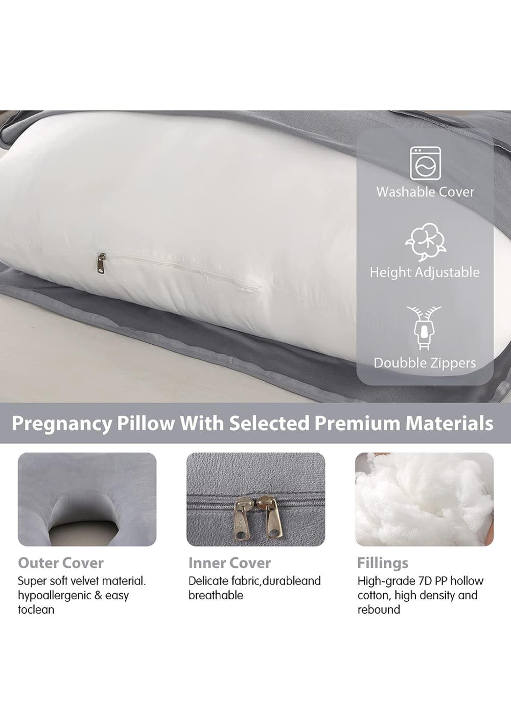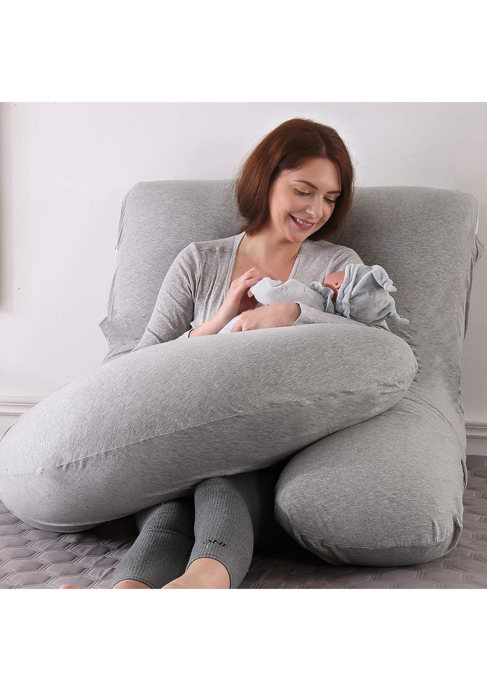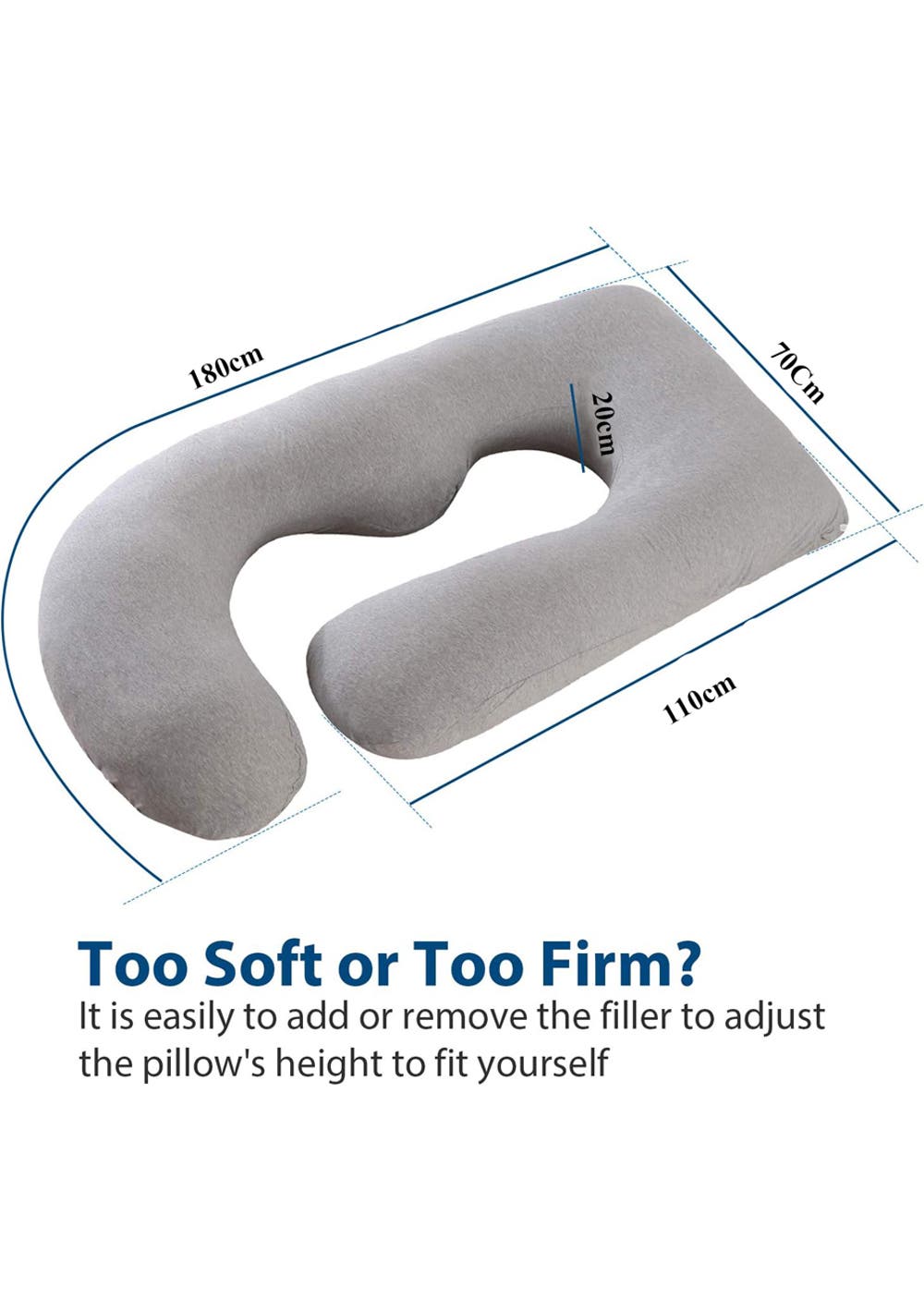 Pregnancy Pillows U-Shape Full Body Pillow-Gray<br>Material: Cotton Polyester<br>Product dimensions (LWH): 110/180 x 70 x20cm<br>Package dimensions (LWH): 50x42x22cm<br>Weight: 3.2Kg<br>Features:<br>• Versatile Support: This pillow is designed not just for pregnant women but for anyone in need of additional support and comfort. It serves as an excellent back support pillow, pain relief pillow, and aids in alleviating discomforts associated with sciatica, fibromyalgia, gastric reflux, and more.<br>• Multipurpose Use: Beyond its primary purpose as a sleeping pillow, it can also be arranged in various comfy positions on the bed, couch, or floor. Whether you're watching TV, reading, or simply relaxing, this pillow provides the support you need. It's also an excellent nursing pillow for postpartum moms and a soothing cushion post-surgery.<br>• High-Quality Material: Prioritizing health and comfort, this pillow is environmentally friendly, containing no harmful substances. With excellent resilience, it offers a soft touch that's skin-friendly. The U-shape design ensures a quiet and comfortable night's sleep.<br>• Adjustable Thickness: Customize the pillow's thickness to your preference. By adding or removing the filler, you can freely adjust its thickness for optimal support.<br>• Easy Maintenance: Both the inner and outer covers are equipped with zippers for easy removal. Cleaning is hassle-free; simply throw the cover into a standard washing machine and dryer to keep your pillow fresh and clean.<br>Inside the Package:<br>1 x Pregnancy Pillows U-Shape Full Body Pillow