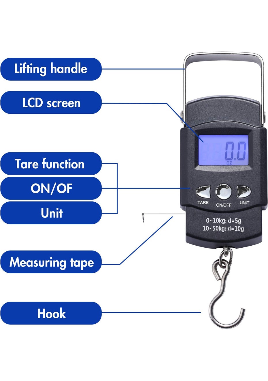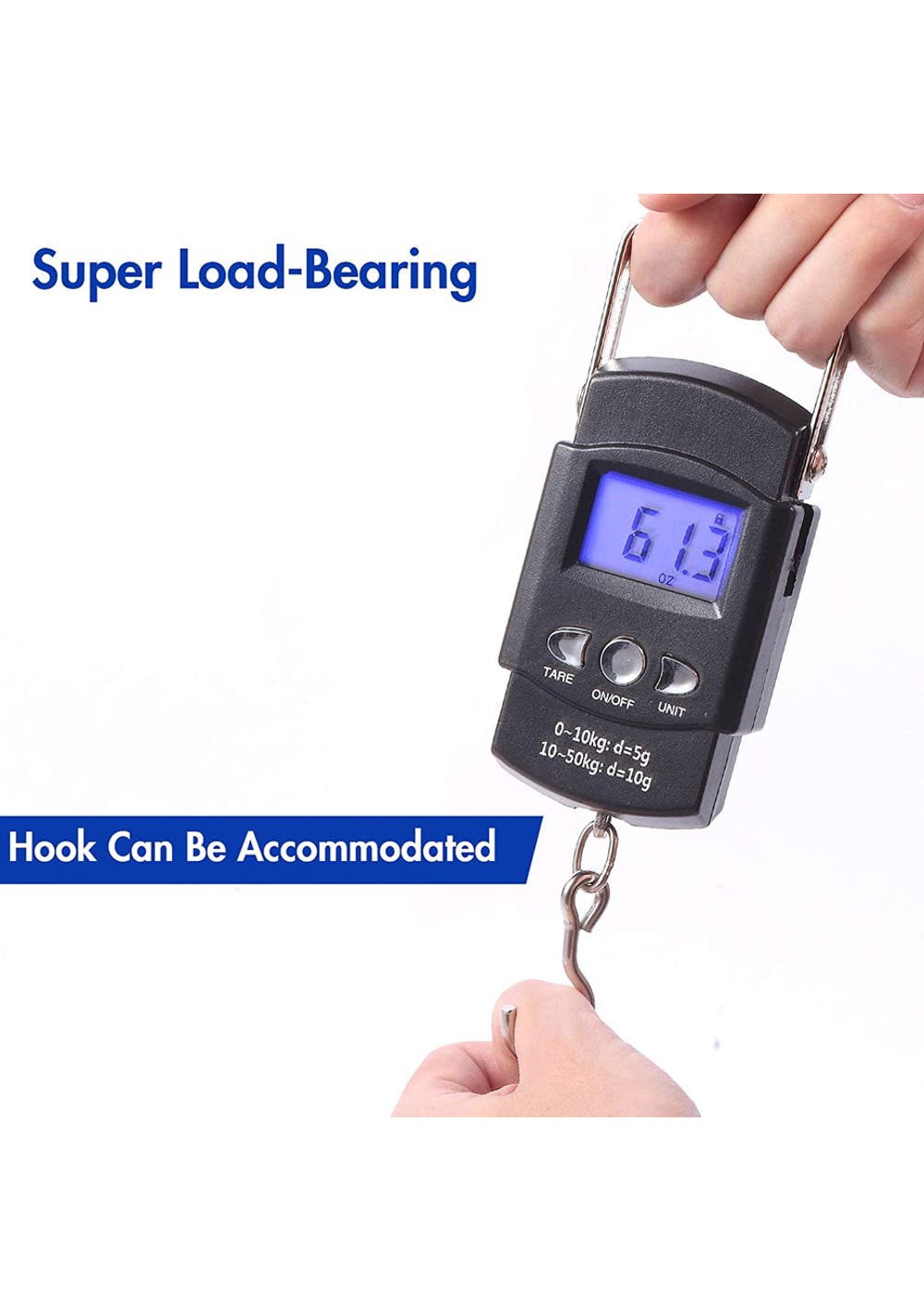 The sturdy Stainless Steel Hook at the bottom of the Hanging Scale can easily lift up luggage or big fishes so you can know their weights right away without worrying about the safety