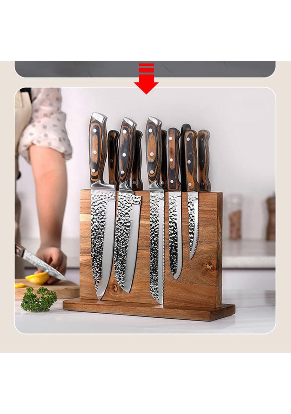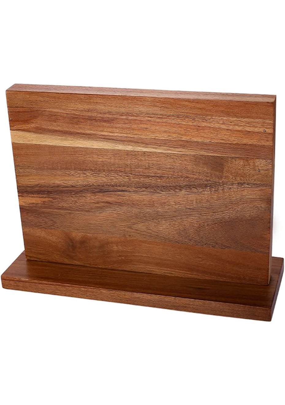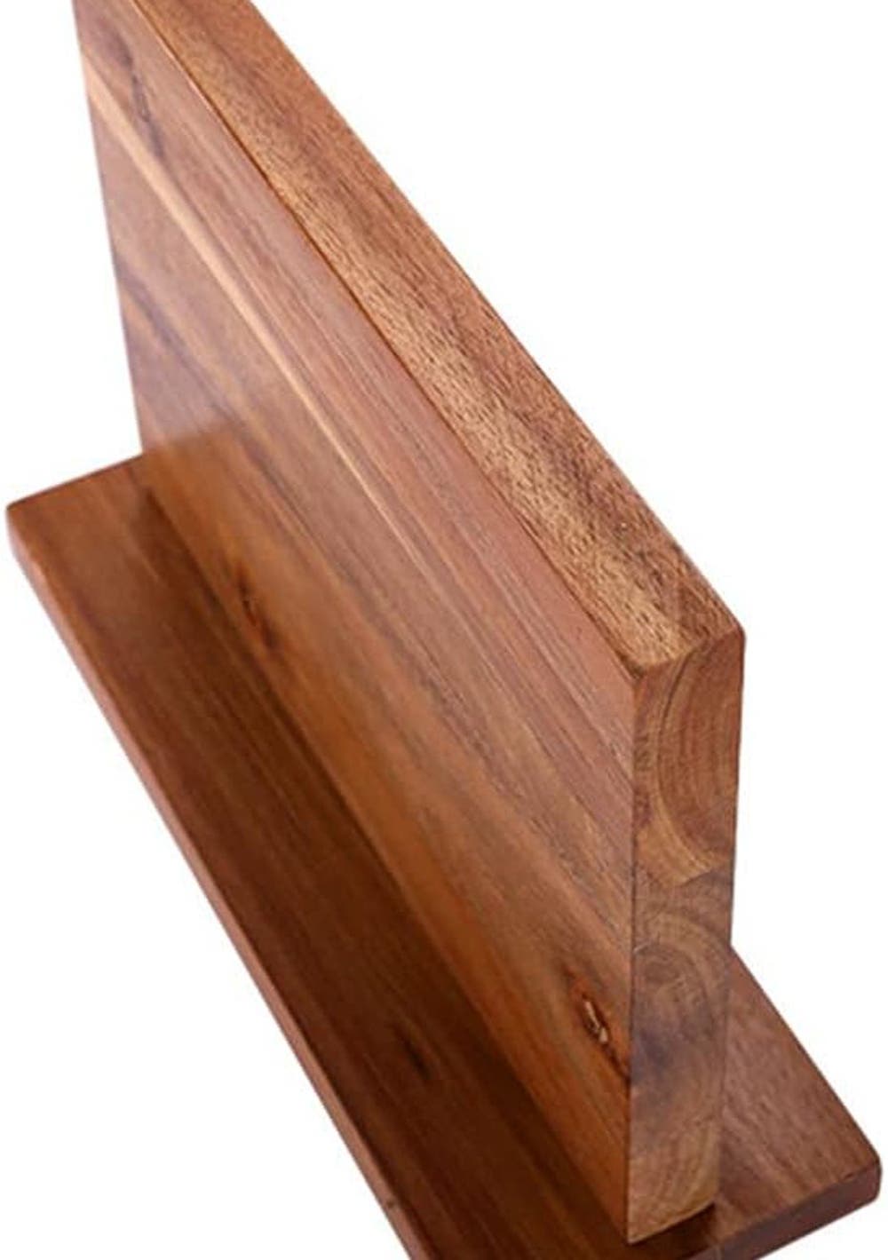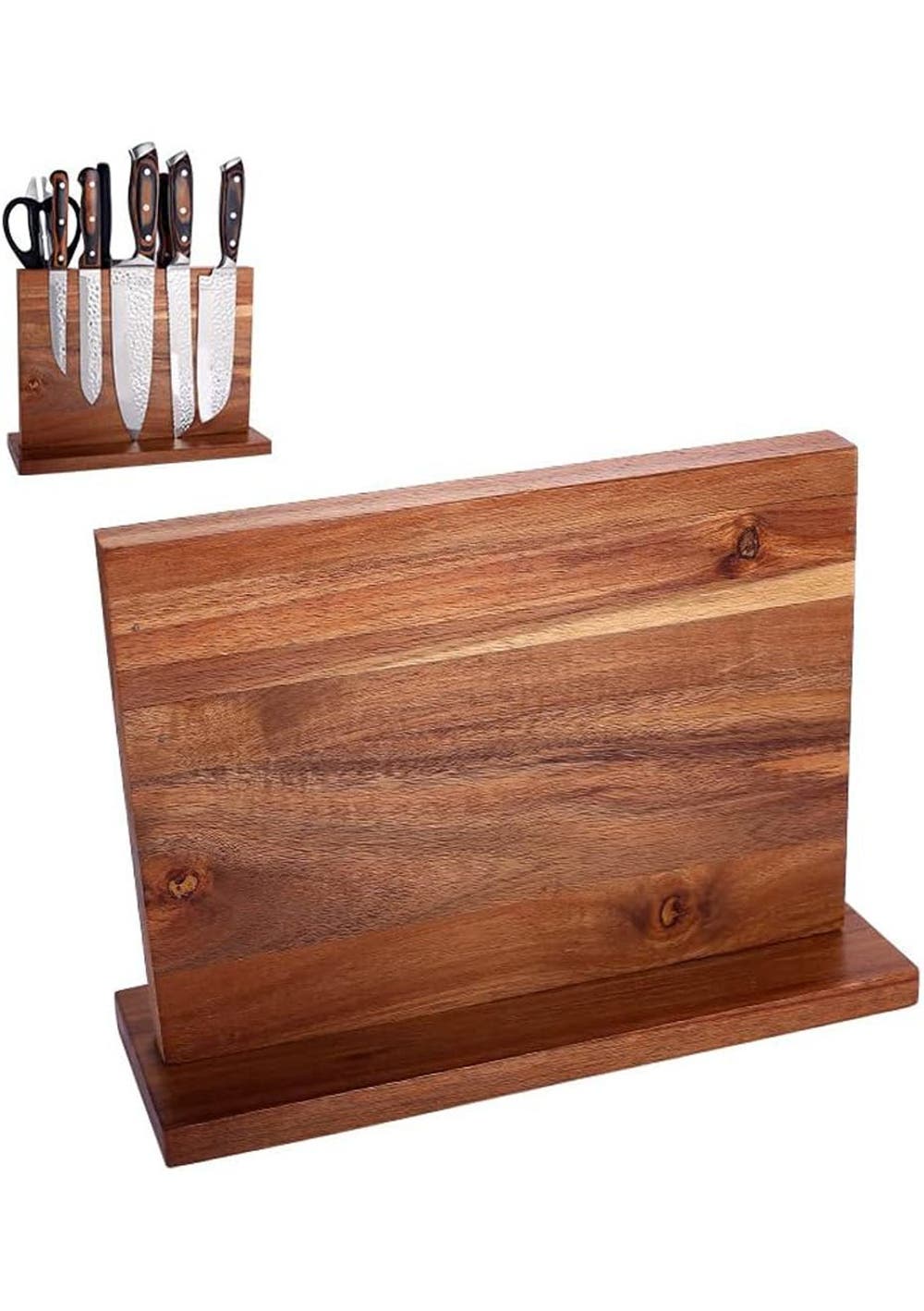 Double Sided Wooden Magnetic Knife Block Holder Product Specifications: Material: Solid Wood with Magnetic Lining Dimensions: 29.6 x 10.4 x 21.8 cm (L x W x H) Package Dimensions: 30.5 x 21.5 x 5.5 cm (L x W x H) Weight: 1.75 kg Sub Title Solid Wood Magnetic Knife Block, Double-Sided Magnetic Knife Holder with Strong Neodymium Magnets, Space-Saving Knife Storage for Kitchen Counter Key Features: Space-Saving Design: This magnetic knife block offers an elegant and efficient solution for storing kitchen knives, keeping them within easy reach while minimizing space usage on your kitchen counter. (Knives not included) Strong Neodymium Magnets: Equipped with powerful neodymium magnets on both sides, this knife holder securely holds your knives in place. The magnets are so strong that even if the block is turned upside down, the knives remain firmly attached. To remove a knife, simply twist the handle for an easy release. Inspired by Japanese Minimalism: The acacia wood stand brings a touch of Japanese minimalist design to your kitchen, enhancing its decor with a chic, modern aesthetic. Sturdy and Durable Construction: Made from high-quality wood, this magnetic knife block features an easy-to-clean surface, ensuring optimal hygiene. Rubber feet provide a stable base, preventing slipping when knives are removed. Package Includes: 1 x Wood Magnetic Knife Block 1 x Screwdriver 3 x Screws