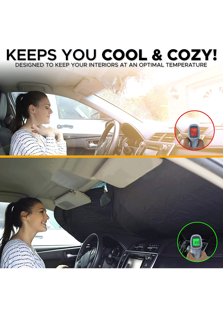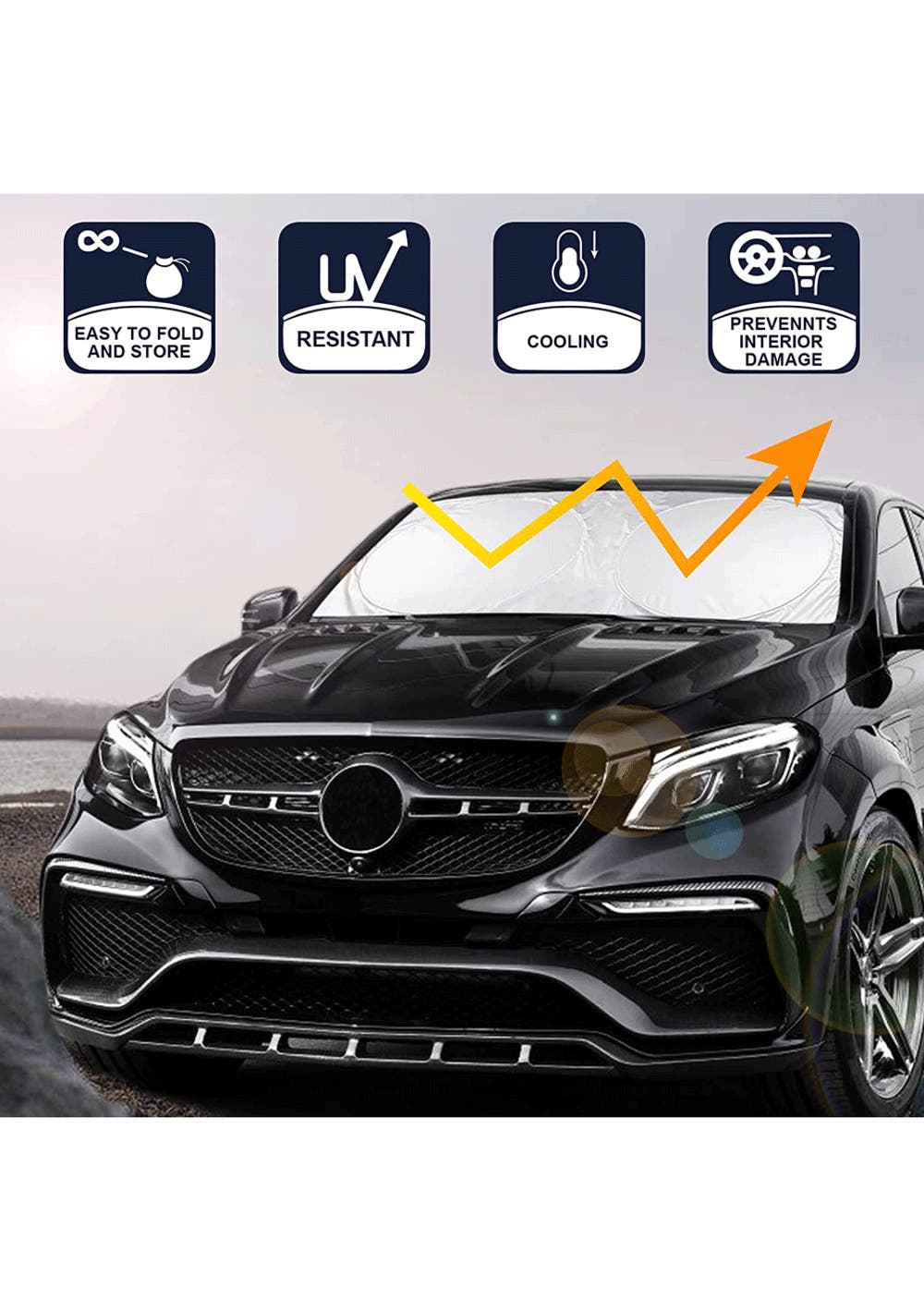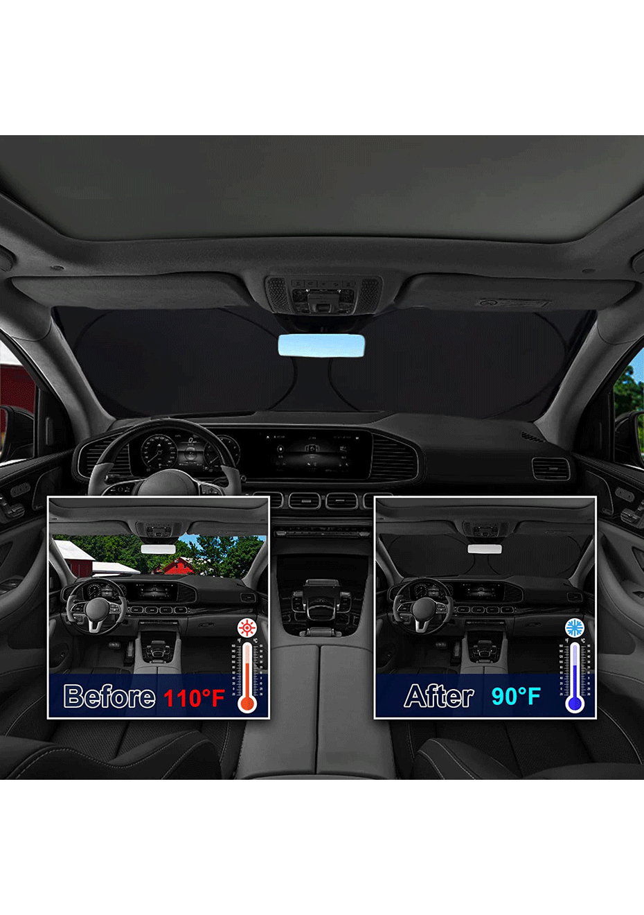 Protects Your Car Interiors: We know that the sun heat can be exhausting to you as well as to your car. The Car Sun Shade for Windshield is effective against harmful UV rays from damaging your car's interior accessories. It is super durable and convenient to use.