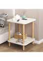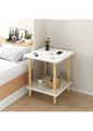 2-Tier Tall Square Wooden Side Table Bedside Table-White