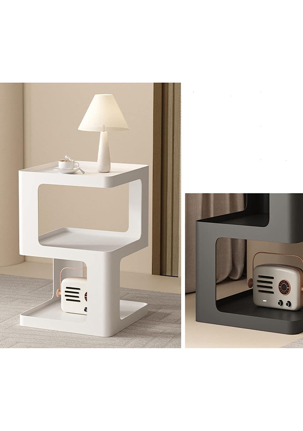Modern Creative Design Bedside Table - White<br>Material: Carbon Steel<br>Product dimensions (LWH): 40x40x54 cm<br>Package dimensions (LWH): 48x48x64cm<br>Weight: 7.5kg<br><br>• A stylish and functional addition to elevate the decor of any space.<br>Add a touch of sophistication to your room with this Modern Creative Design Bedside Table, and enjoy the blend of functionality and art it brings to your space.<br><br>Features:<br>• Stylish & Contemporary: Its modern design enhances the aesthetic appeal of any bedroom, giving it a touch of elegance. The vibrant black shade perfectly complements your bed and other furniture.<br>• Compact Yet Spacious: Perfectly sized for modern living, this table offers ample space for your books, snacks, or evening tea, ensuring everything you need is within arm's reach.<br>• Multi-purpose Utility: It's not just a bedside table! Its sleek design allows it to function as a sofa table, corner table, coffee table, or even a nightstand. The choices are endless.<br>• Versatile Placement: Whether it's your bedroom, your child's room, a reading nook, a lounge, a balcony, an office, a college dorm, or an apartment – this table fits in seamlessly, adding charm to any space.<br>• Sturdy Build: Made with high-grade carbon steel, this table promises both durability and stability, ensuring it remains a part of your decor for years to come.<br>• <br>What’s in the Box?<br>1 X Modern Creative Design Bedside Table