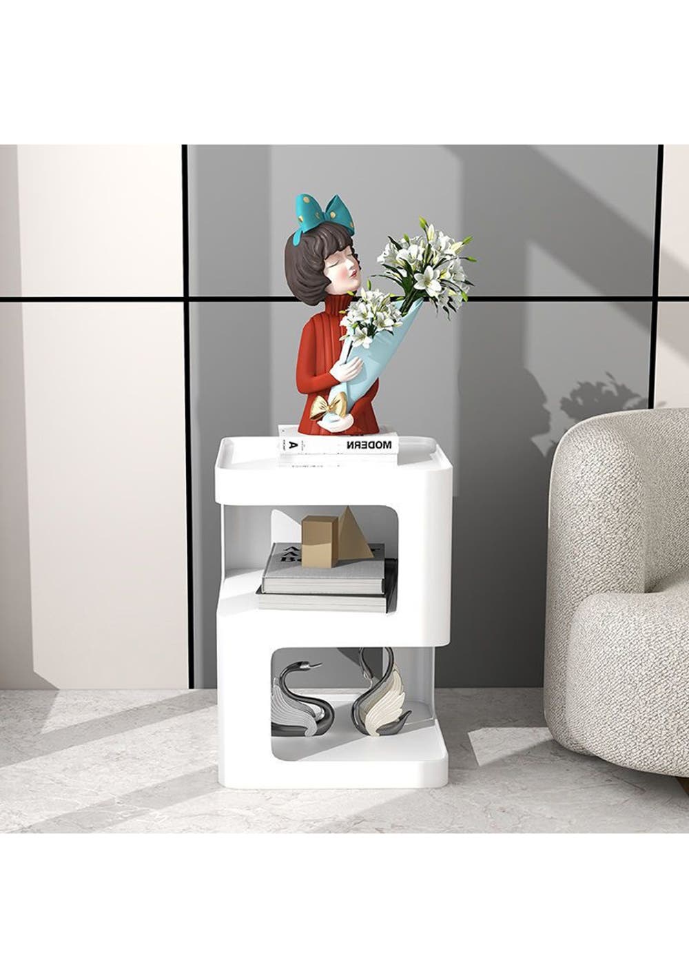 Modern Creative Design Bedside Table-White
