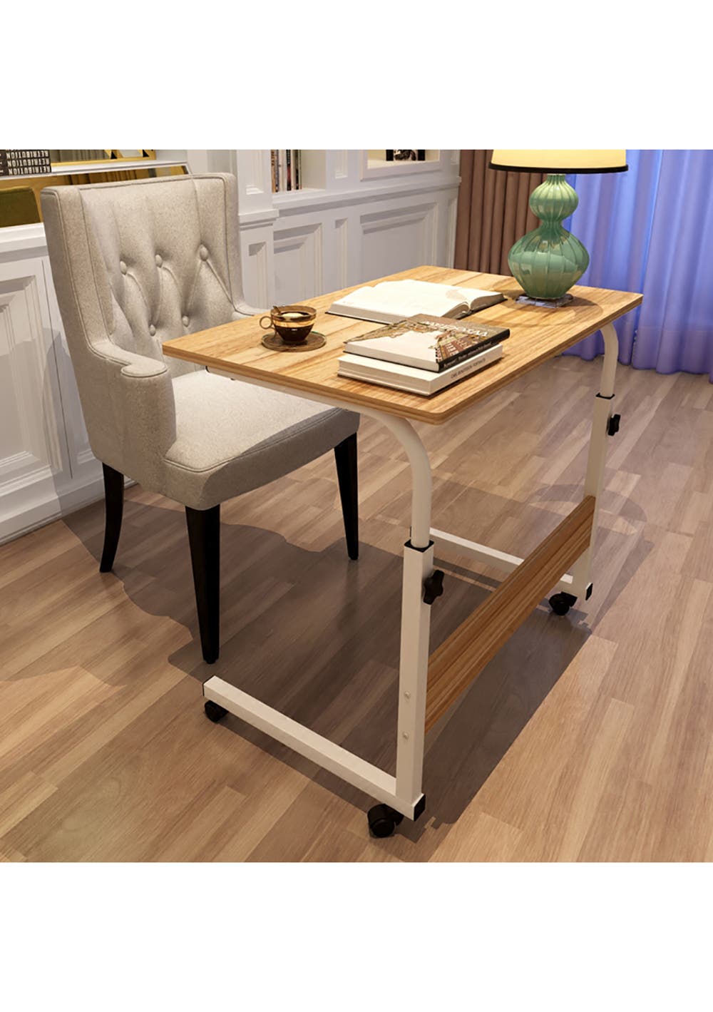 High gloss finish with adjustable height 65-85cm to meet the different needs with 4 castor wheels. Easy to Assemble